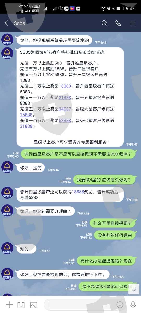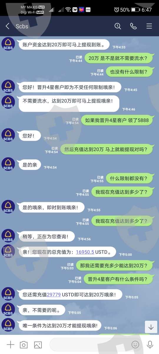 骗子平台 明明达到了预留 又说账户有嫌疑 要交保证金30% 交了又说没有流水不能提现 又引导人家加额20万 结果最后还是提不了现 大家千万小心 刚查了现在很多这种平台 千万不要把钱投进去 不然提不了现人都不知道要去那儿找 根本没有实体办公室 连联络电话都没有 也不受监管会的管制 说不还你就不还了。