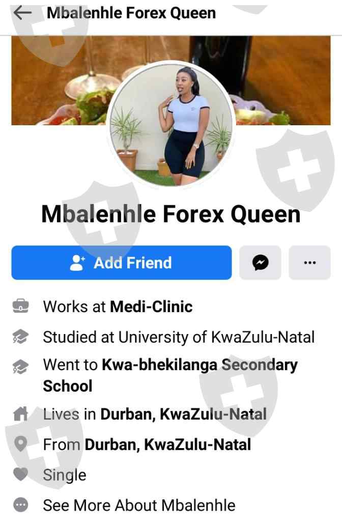 SCAMMERS: FaceBOOK "Mbalenhle - FOREX trade investors.