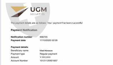 The initial transactions went smoothly, Then i wanted to withdraw money on my account, Usually withdrawals are processed within 30 minutes to 1 hour, but this time two weeks passed and nothing was process, By the way, i tried to contact customer support to handle everything but to no avail as my withdrawal request was not to be processed until i pay an international remittance certification fee, so a complaint was made to financialrecovery.tech and their activities helped me through to a refund. All the parameters on UGM SECURITIES LTD are fake. You will be cheated and more money will be lost. Please stay alert.