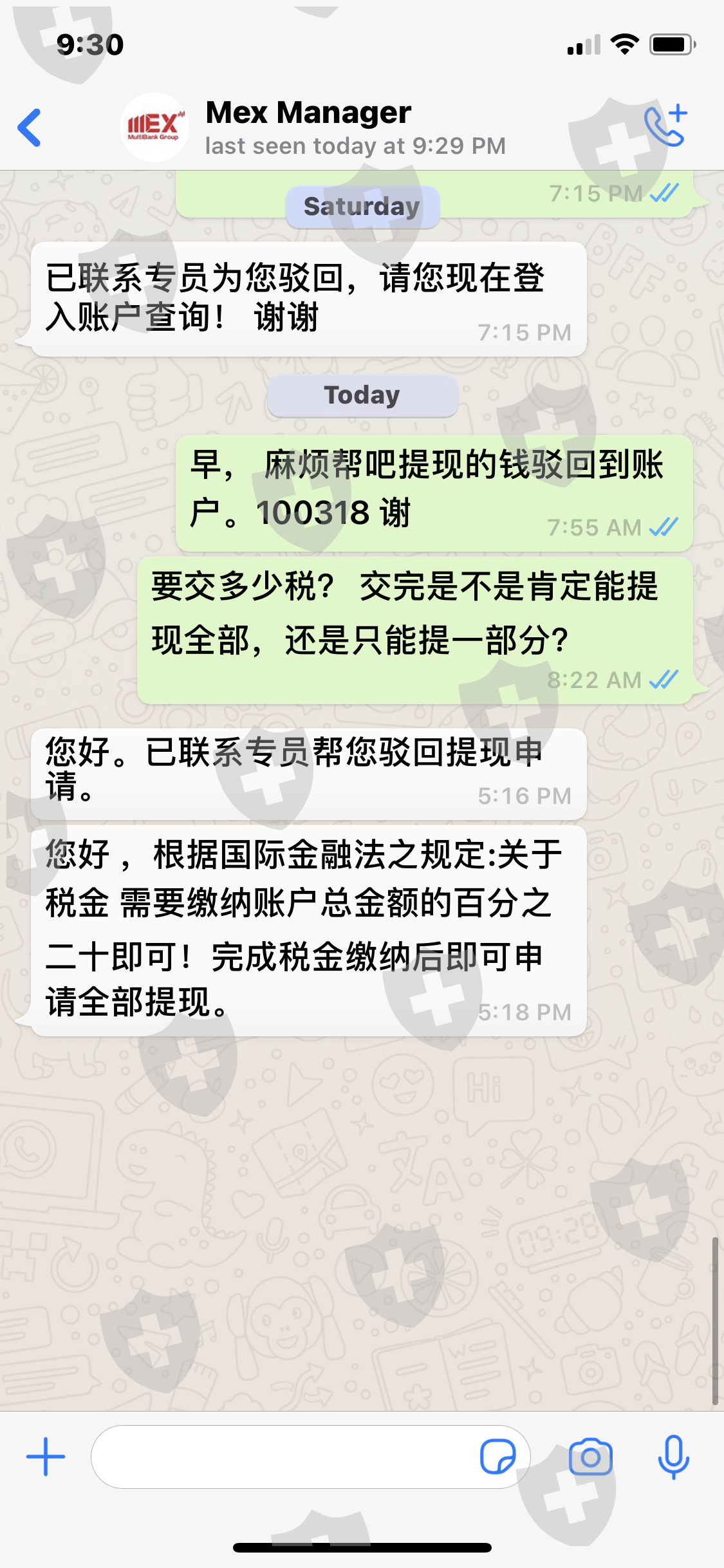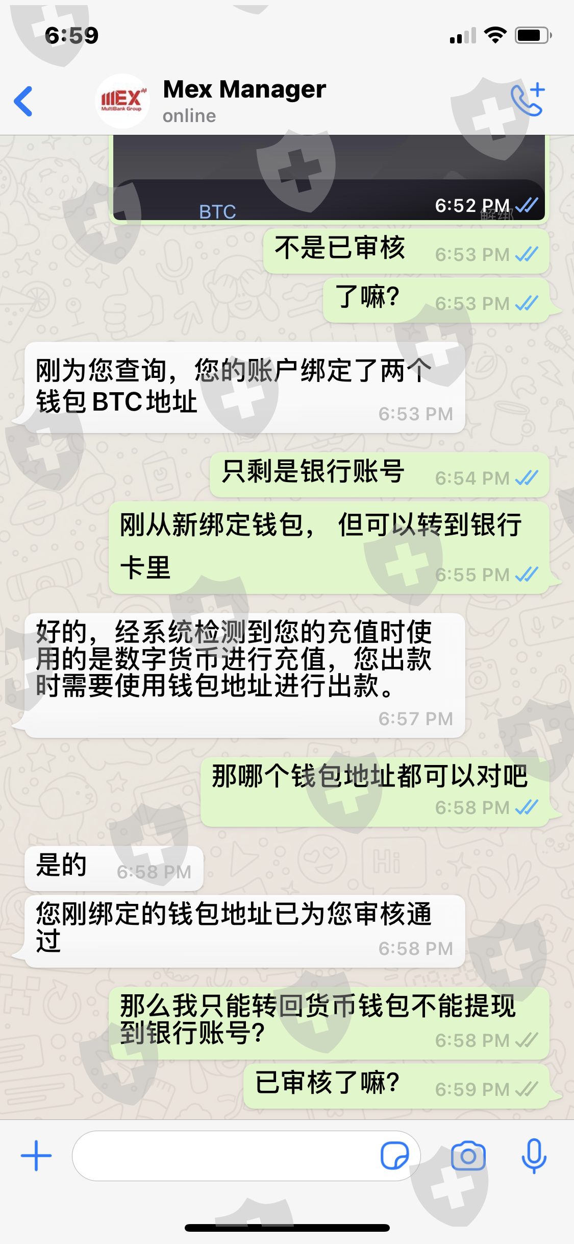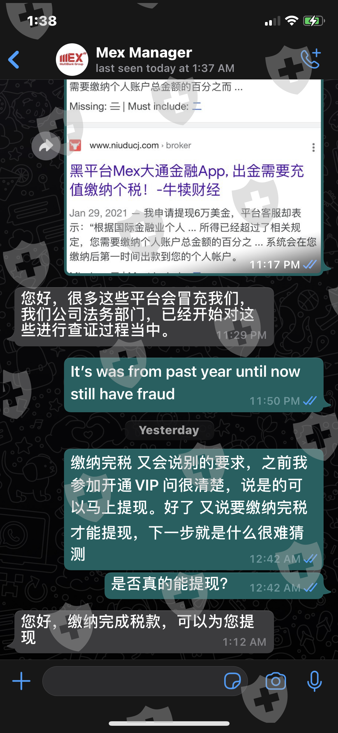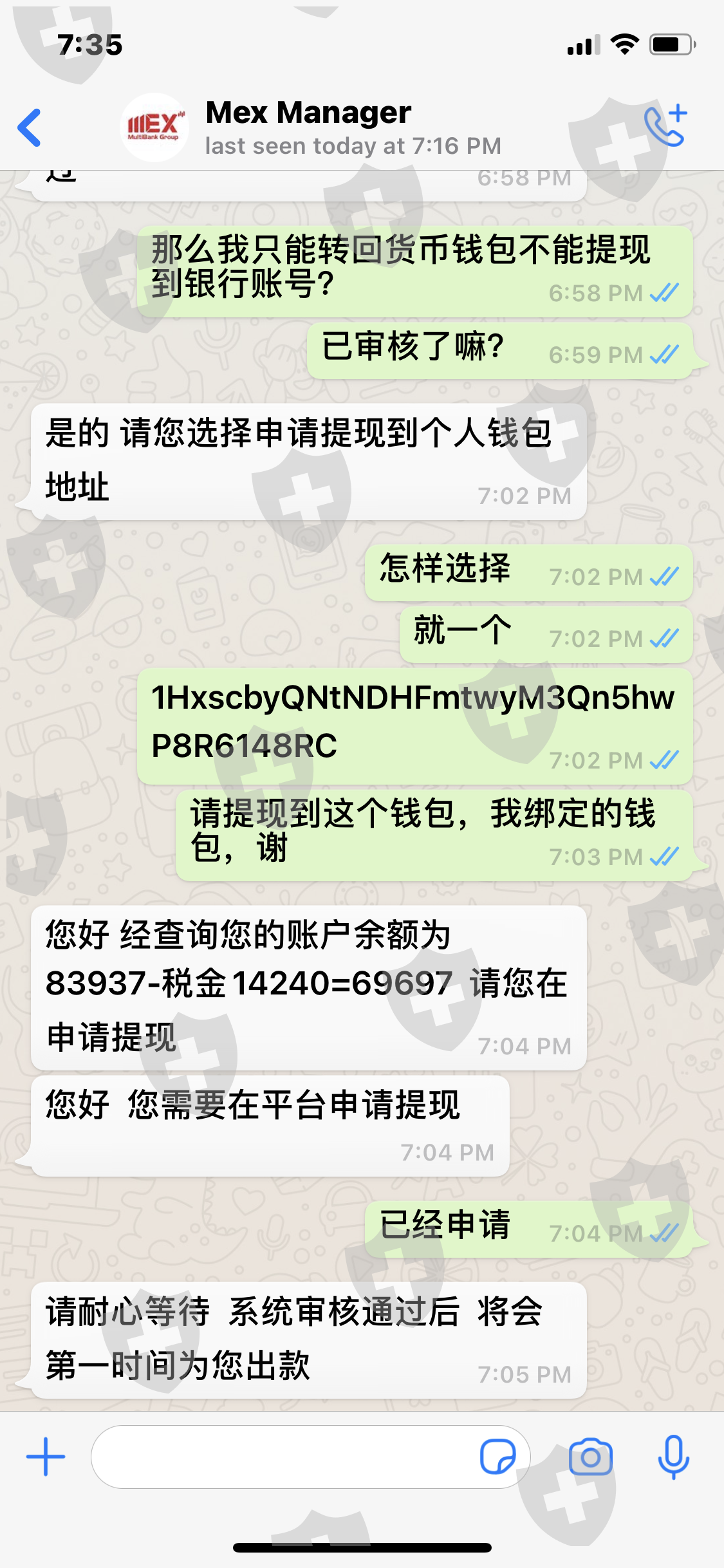 Trade for a while first month on February can withdraw little amount , until March than can’t withdraw no more they said usa was restricted ,,,, than promotion you join VIP paid $50000 deposit to you MEX account, than u can withdraw money instantly.after joined they said need paid 20% tax amount you have in your account was $71000 follow international financial laws something ... I’m paid $14020 after paid they said After financial review, your withdrawal address is incorrect. Please check and fill in your withdrawal address correctly. For the safety of your account and property protection, the system automatically turns on the protection mode and your member account has been frozen. You need to complete the following requirements to unfreeze your membership. Please provide your identity certificate and your correct withdrawal address at the same time. In order to prevent your account from being withdrawn by someone other than your own, please pay a percentage of the total account amount after financial requirements. The twelfth is a margin of USD 13,939. The proof is your own withdrawal. After the above requirements are completed, the financial department will review it for you as soon as possible. After the review is confirmed, your security deposit will be returned to your member account, and the payment will be made for you as soon as possible.I did right address wallet than on picture they said I’m wrong it less letter C ,
