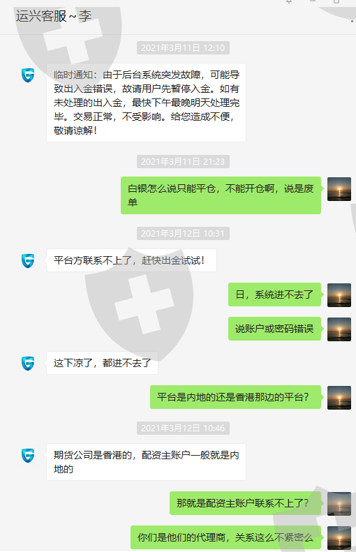 6、2021/3/12突然出不金,信息管理系统与交易软件均登录不上,说主账号不存在。希望看到的注意!