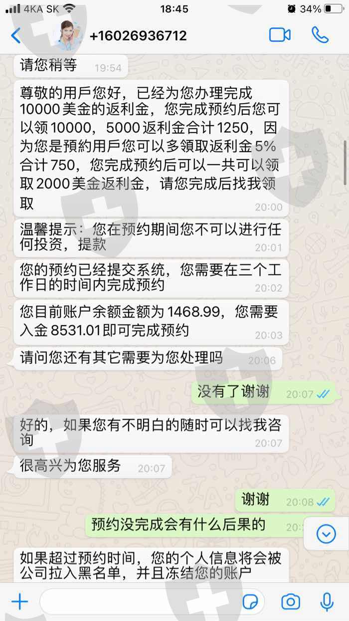 有个导师带我进这个平台,我充值带我玩了一会就让我去客服预约存钱会多百分之5的返利金,要我再交8000多美金我没有就把我账号冻结了