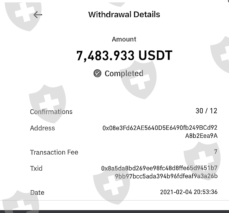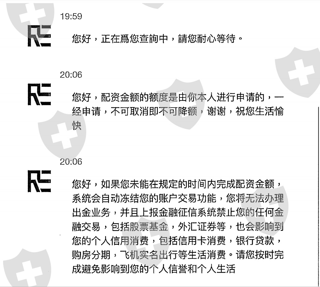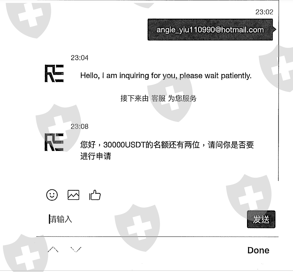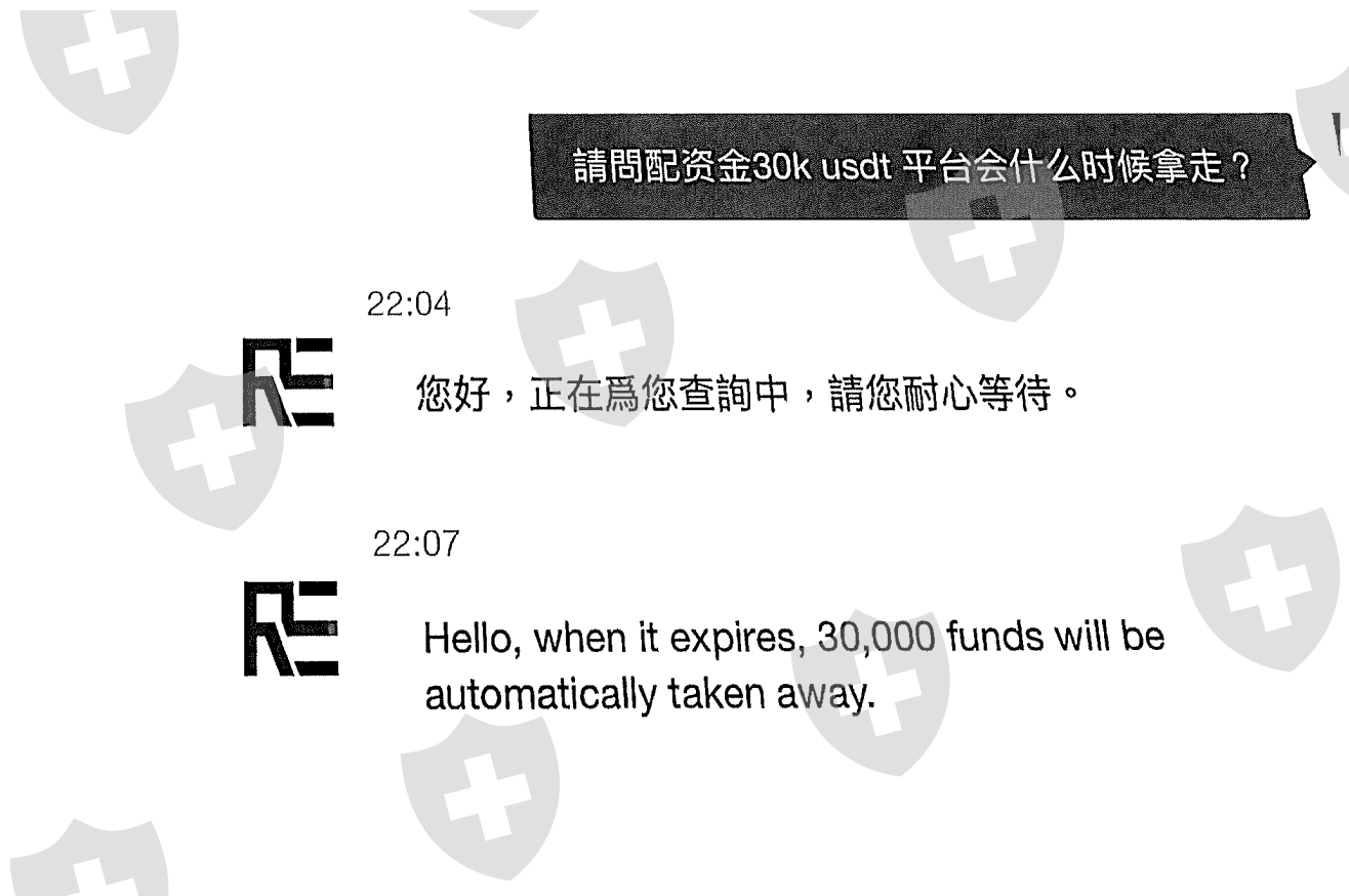 RE告诉我,他们有促销分配贷款的方式,他们将提供$ 30000USDT的贷款,但条件是我必须将相同的$ 30,000 USDT存入该帐户。我已申请接收此报价。在申请时,我的帐户中已经有$ 7,483.93 USDT,除了我必须在帐户中存入$ 30,000 USDT之外,没有其他任何有关此要约的信息。只是在我的申请获得批准后,他们才告诉我,我需要在21年2月21日下午11点59之前将30,000美元存入我的帐户,其中不包括我已经存入的7,483.93美元。当他们表示如果我不再存入$ 30,000时,他们每天会从我的帐户中扣除20%并向澳大利亚银行委员会报告,这可能最终影响我的信用评分,但我在存款之前已经开了口,我对此表示怀疑与Financialrecovery.tech合作调查RE的案例。在21年2月15日,我联系了RE并要求从我的帐户中提取$,我被告知RE不支持从澳大利亚的存款和取款,我需要向我的帐户中充入$ 13,339 USDT作为“保护性存款” '占我帐户余额的20%。