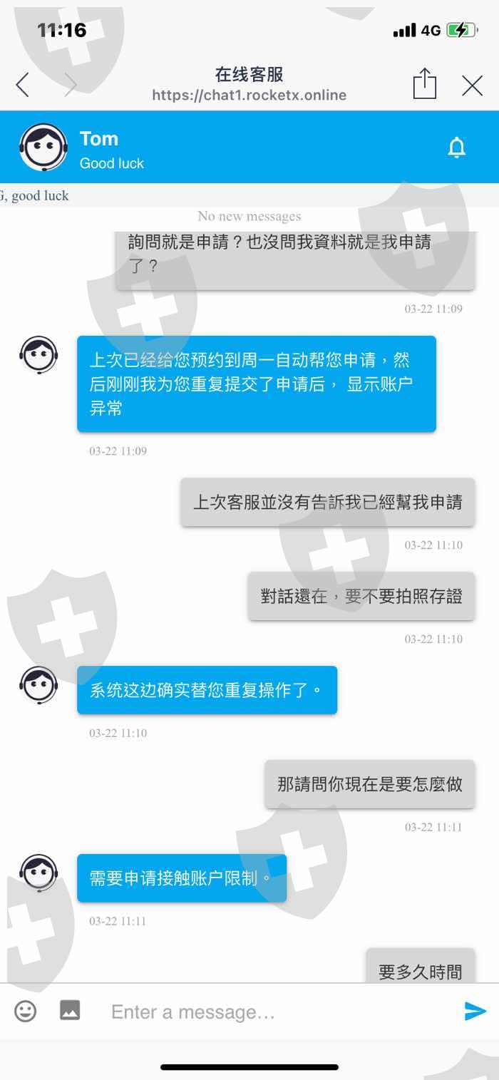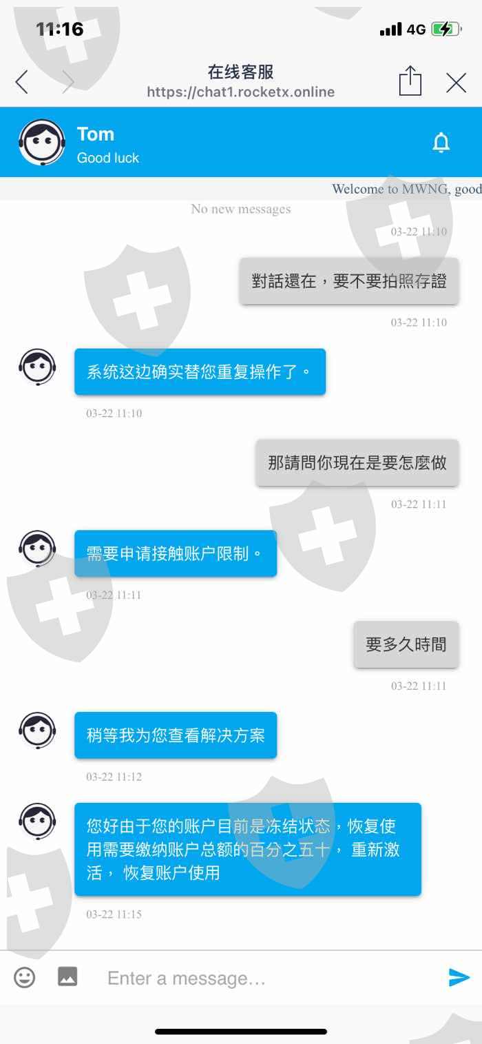 我於2021/03/21在不知情的情況下跟客服申請提領新台幣 客服當時告訴我目前非工作日 我問了工作日是甚麼時候 他告訴我是周一到週五服務時間是加拿大時間早上9:30-晚上9:30 於是我在2021/03/22的早上跟客服說明我要提領新台幣 他查詢過後問我說我是不是申請過 然後說我申請重複提交 所以我帳戶異常被凍結 說我上次的詢問就是已經申請..... 明明就是告訴我非工作日不能申請 然後我要提領就用我重複申請的理由直接凍結我帳戶 並且在mt4的餘額直接被消除.....然後我告訴我要我在繳納帳戶總額的百分之50才可以解凍帳戶..... 這種嚴重不合理的凍結方式 根本就是向詐騙一樣....