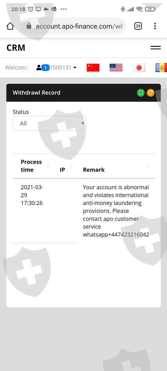 APO FINANCE LTD是欺诈,请小心