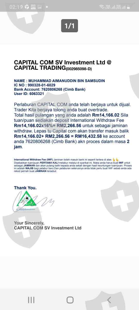 我和我的朋友给了capital.com 50/50捐赠的这笔资金,以便在2021年3月6日尝试进行美观的投资。那时候我们很难为马来西亚流行的Covid 19发行的薪水coz争取工作资金,所以我们捐赠给资本。