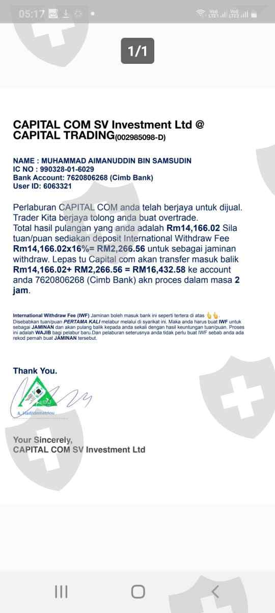 i and my friend give 50/50 donate this funds to try a good looks investment at 6march 2021.thats time we so hard to get work funds for salary coz of pendemic Covid 19 issue in malaysia.so we donate to capital.com because of this