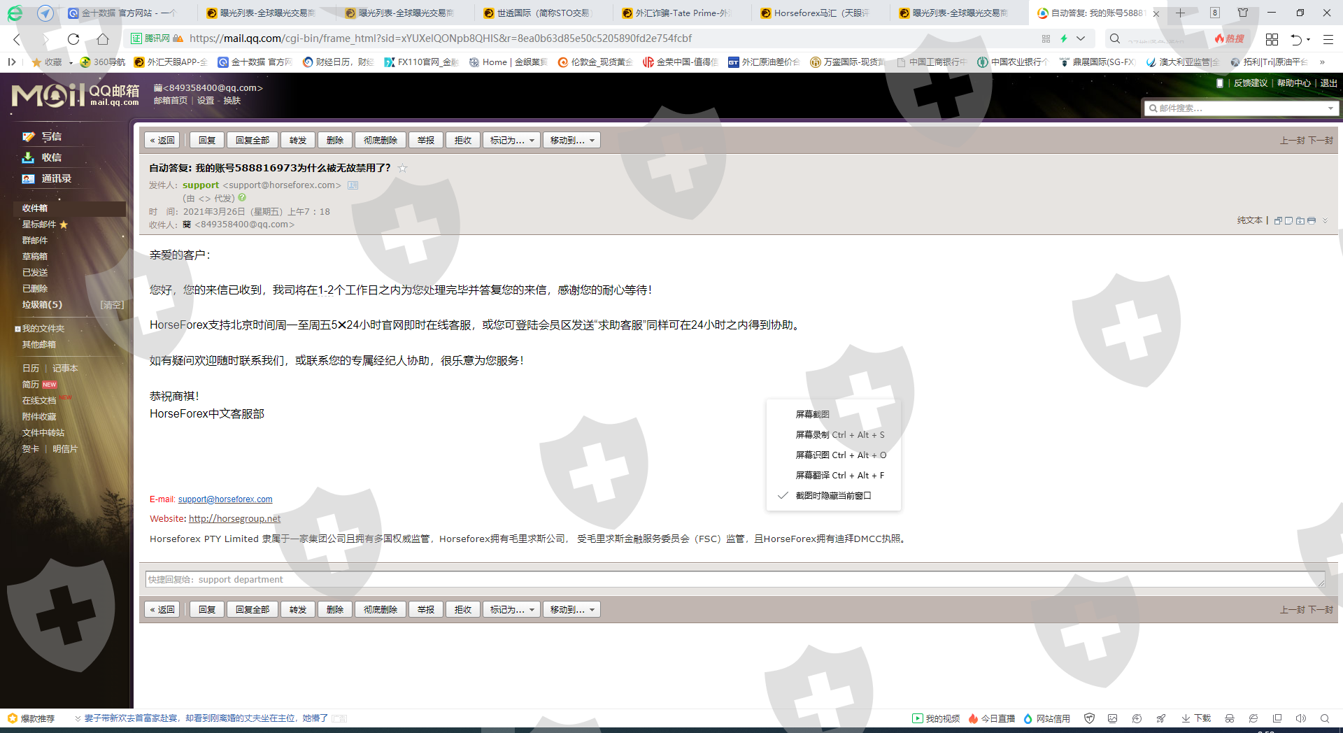 Horseforex马汇无故封禁我的账户
