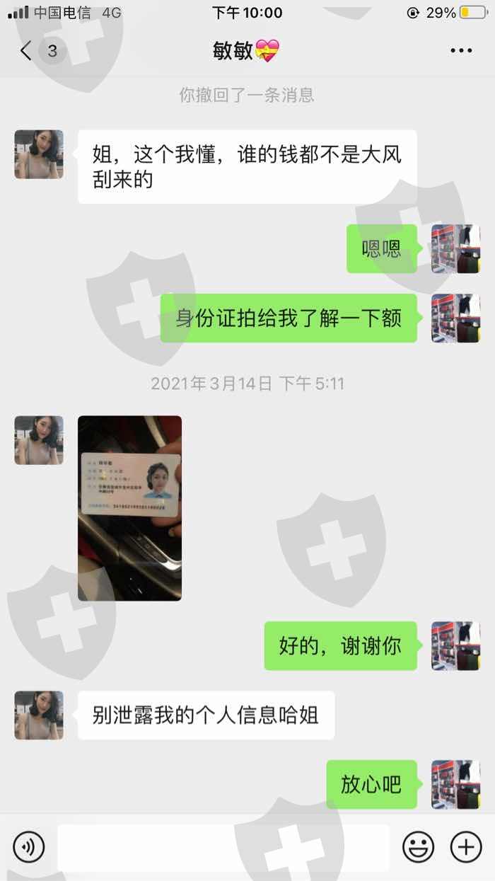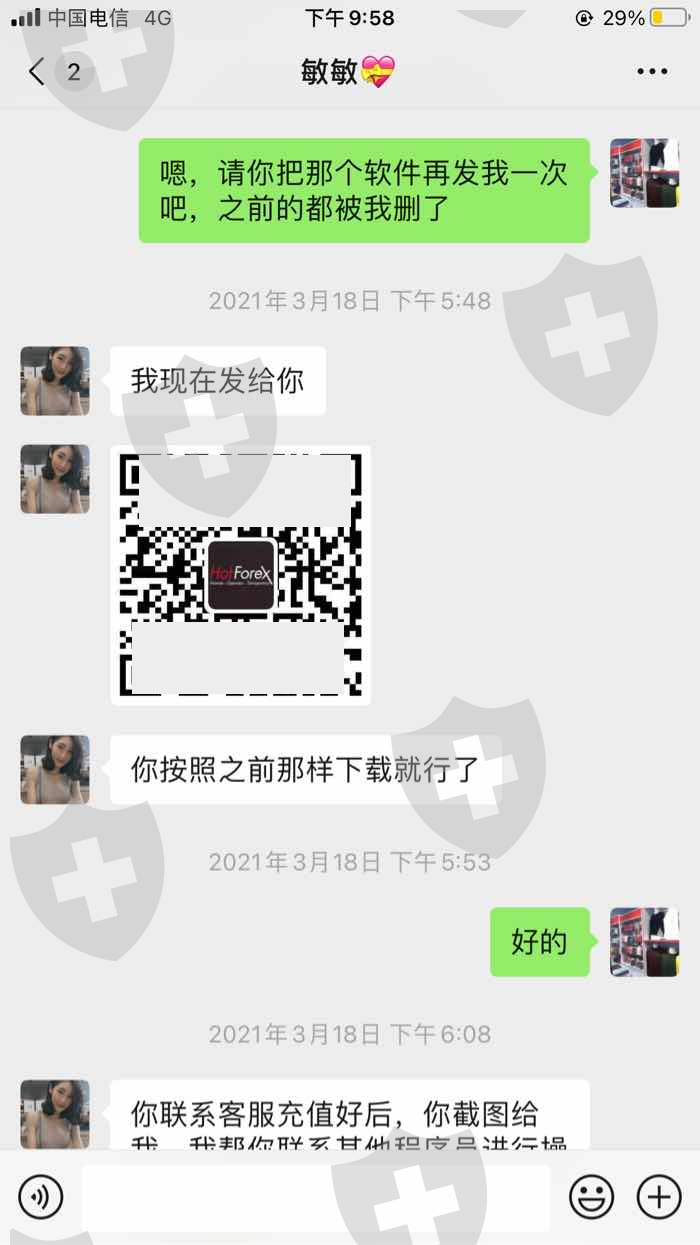 这样的,微信里一个叫敏敏的人朋友圈里经常发什么操作盈利的图,开始我也没有当回事,后来看她天天发天天发,我就觉得好奇了,她说什么外汇数字交易,有我们程序员带你百分百能赚钱呢,还说等我盈利后再收取10%的佣金,我被她说的有点心动了,她就发了个软件二维码给我让我下载进去,开始投了4万进去,等我钱打上去后又说4万的数据不好约,资金越多越好约,后来把卡里仅有的一万也打到平台客服给我的卡号里了,在操作过程中那个程序员说我错了一组数据需要加金8万才能再操作,我就觉得纳闷是不是上当受骗了,就提高警惕没有再加金