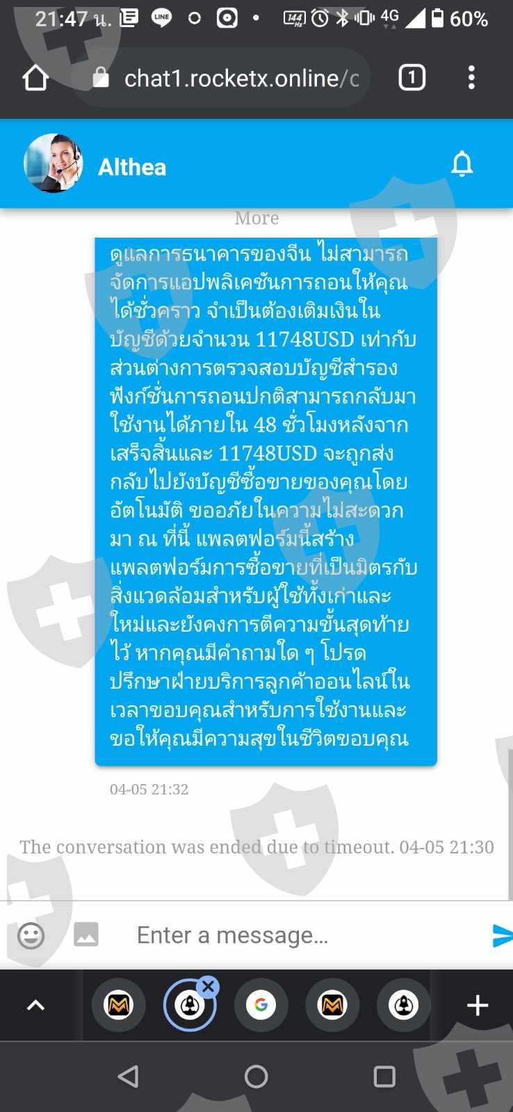 Unable to withdraw money, scam brokerI deposited $11478here and after a while, I wanted to withdraw some of the money but they said my account was suspected of money laundering and requested to deposit an additional $11478for verification. If I do not make this deposit, my account will be frozen and I lose all original funds. Why is it so absurd? They said, I made too few transactions, but actually, I entered a lot of small deals everyday. My withdrawal was pending for 8 days and then the result is an unreasonable rejection.