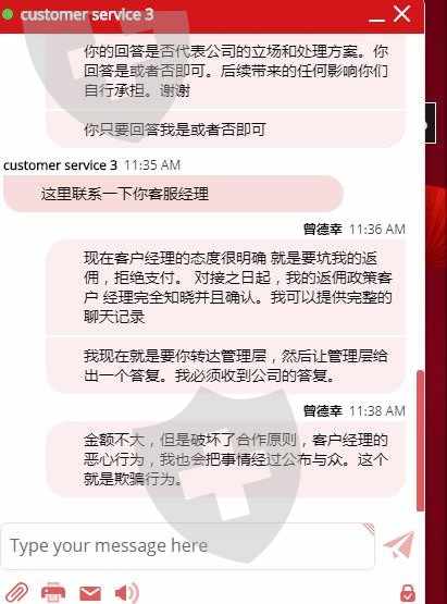 坑代理返佣,所谓的“管理层”做事不理,就是一个业务员