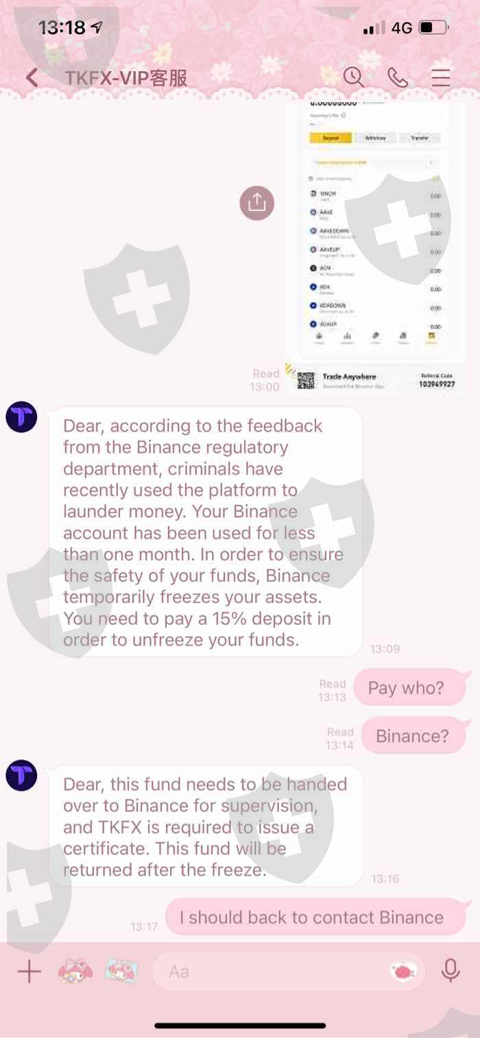 我知道了TKFX从网友那里他像好朋友一样和我说话,直到他让我加入TKFX。他会教你,您将在第一时间获利就可以提款。然后他让我第二次投入更多的资金,获得了25%的利润,然后他告诉我投入更多的资金,我会赚得更多,然后可以提款。是的,我总共投入了将近4000美元,它赚了55%,然后我想提款TKFX说我需要支付Tax20%的提款后,我支付他们仍然冻结我的资金11300 $无法提取。