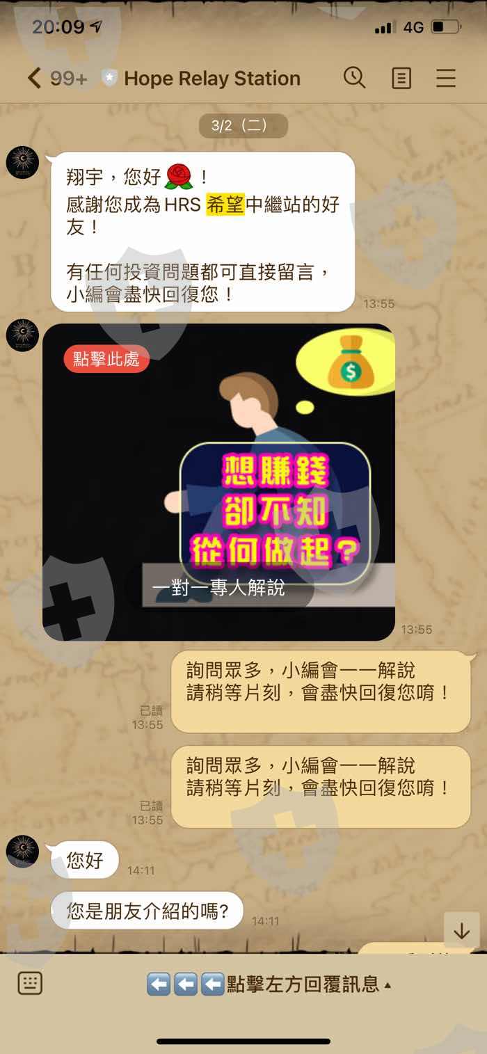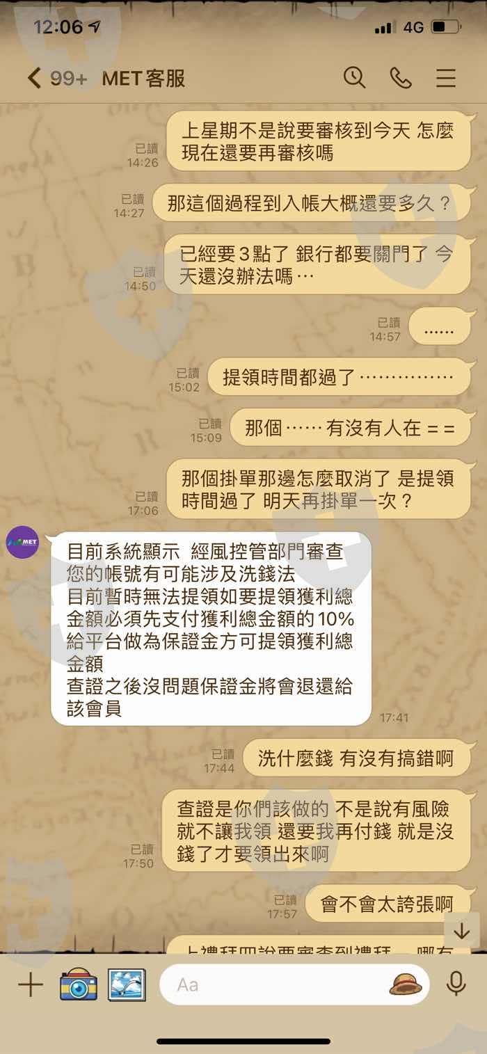 這個是在YT上會出現的廣告內容,說是用破解程式利用平台漏洞帶你操作獲利,進去line後會出現一個小編跟你說明怎麼獲利,之後會讓一個所謂指導員加你好友,指導員會給你這個Met平台的網址要求你開戶入金1000元然後傳給你你一個老師的好友請你加他,並且邀請你進去一個Line社群,這個社群名稱:金幣特務Gold coin agent