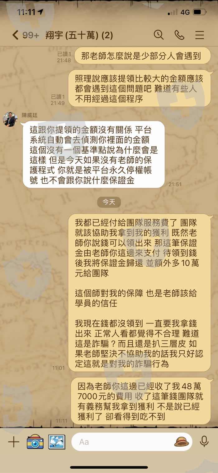 再來就是社群裡有出一個週年慶活動,說是參加儲值金額老師指示名操作獲利(假如參加50萬,可以獲利275萬)而且參加金額沒有上限,儲值得越多獲利金額翻的倍數越高,裡面記事本會有很多相關獲利的人分享的經驗,讓你覺得這麼多人都可以領到錢應該是真的,當然裡面也有一些人還抱著觀望的態度,於是所謂的老師就會另外開一個體驗群組,讓大家體驗說老師指示操作操作的準確性,等你上勾之後就是一連串惡夢的開始,以下看圖說故事。