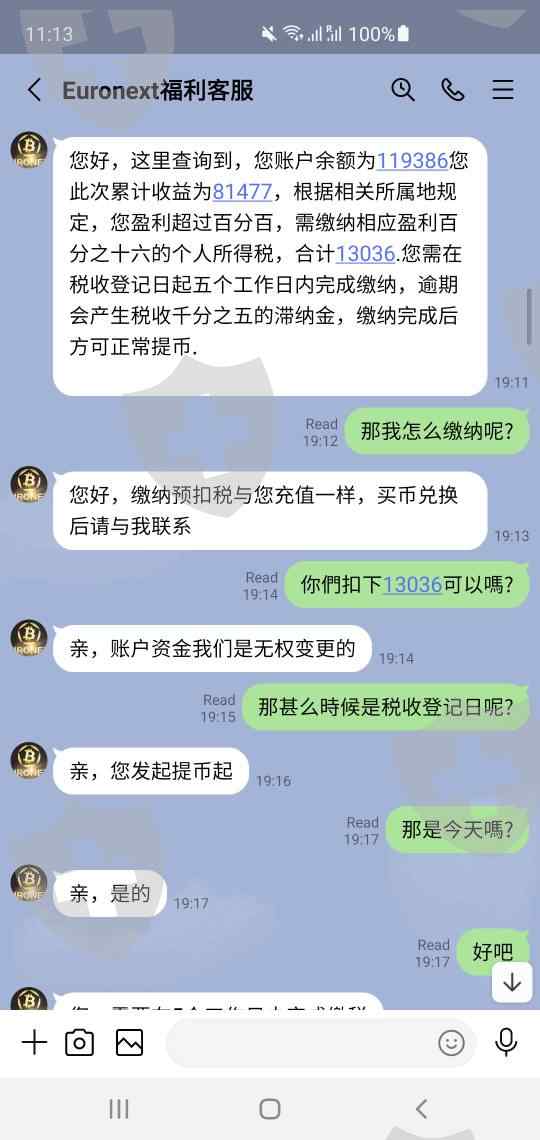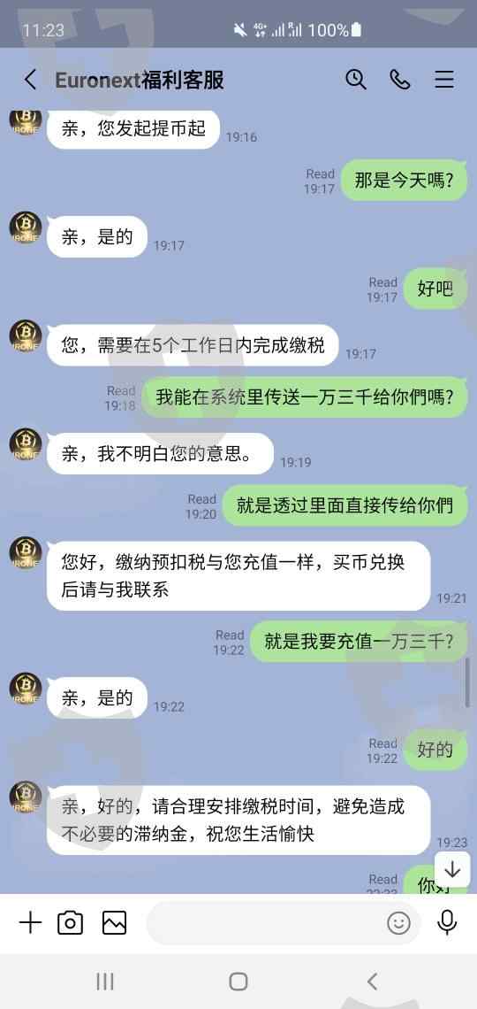 我是另外一个受害者,这个假冒Euronext比特币交易平台我被骗20万人民币,这个骗子加我之后慢慢给我哄骗跟她做比特币带我赚钱,慢慢的投了三万多美元,最后也是提现的時候提不出来,那个叫福利客服说要我缴盈利额的百分之十六的税才能提币,我才发现被骗了,请大家引以为戒。