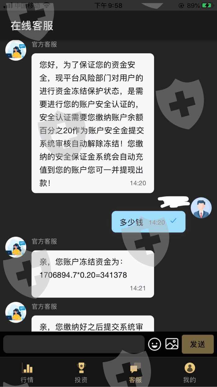 以银行卡输错为由,拒绝出金,说得交保证金,交完还得交个人税,现在人也消失,钱也被骗,客服还很牛呀!都不怕报警,希望能曝光他们,