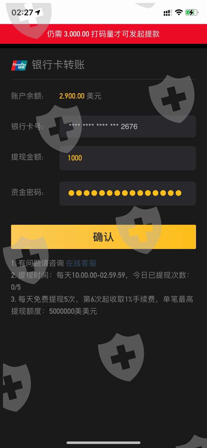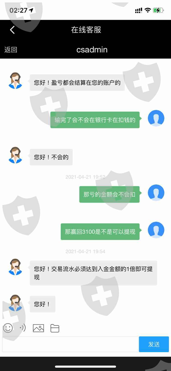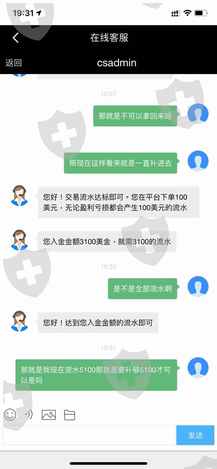 入了3000元美金进去,再点击买100元亏了马上就去把剩下的想提出来,当我点击提现时就说不能提,跟客服沟通就说要我继续入到流水金的1倍才能提,这样你就是在骗钱啦,借口这个那个.这就是一个骗人的爱华