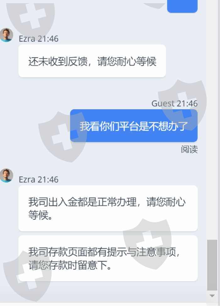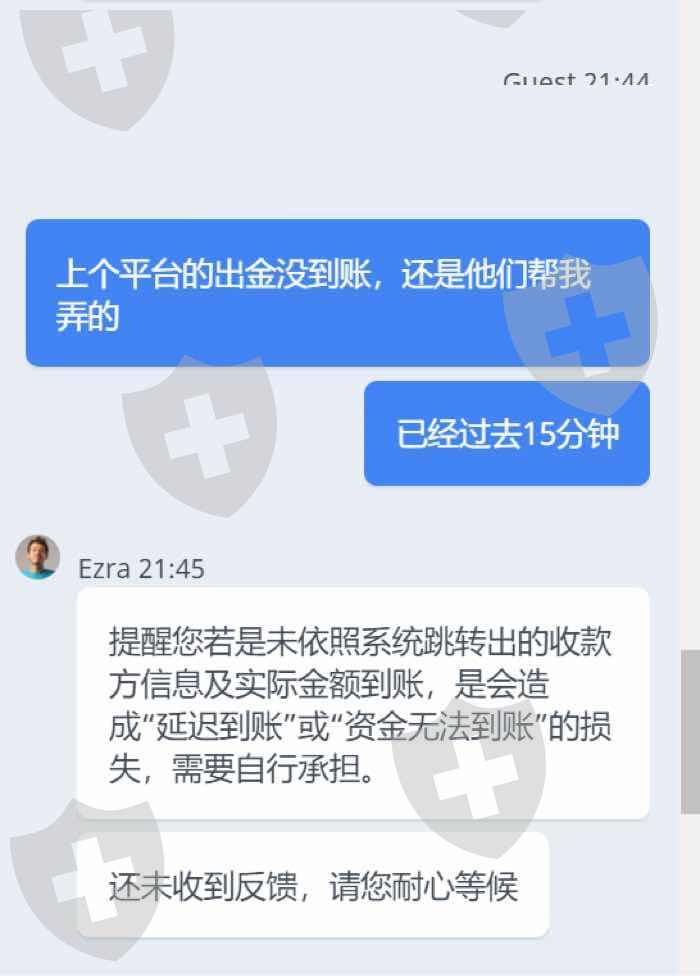 半个小时了,入金还没到账,官网客服嚣张得很,要我自行承担,之前就听说出金不到账,现在入金也不到,投资者们小心了
