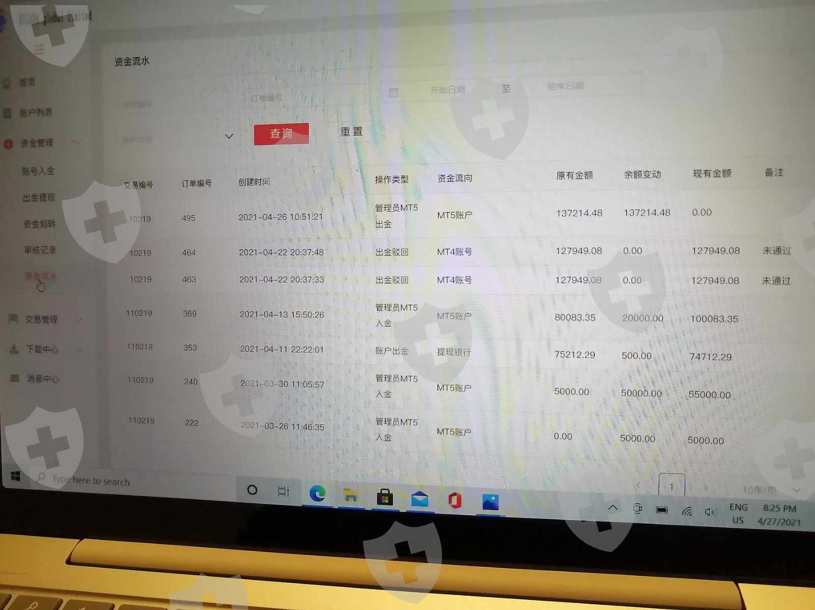 我们附加了在用户中心拍摄的照片以进行验证。我们要求取出75000.00美元的本金,但是香港办公室MT5管理员进行了海盗行为,直接拿走了全部137,214.48美元的帐户资金。投资者如何信任这种经纪人!!!