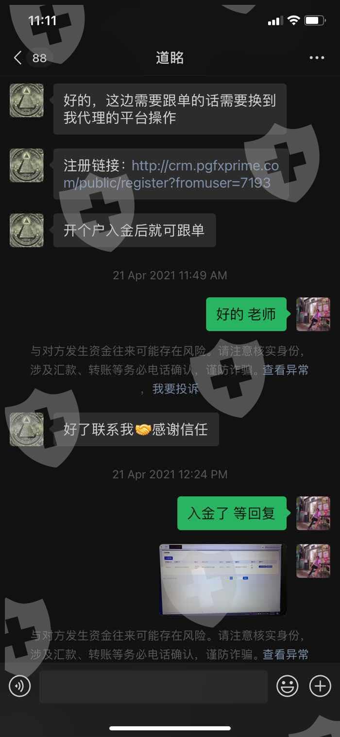 注册链接:http://crm.pgfxprime.com/public/register?fromuser=7193以下是聊天记录和出金问题,远离黑平台的骗局。