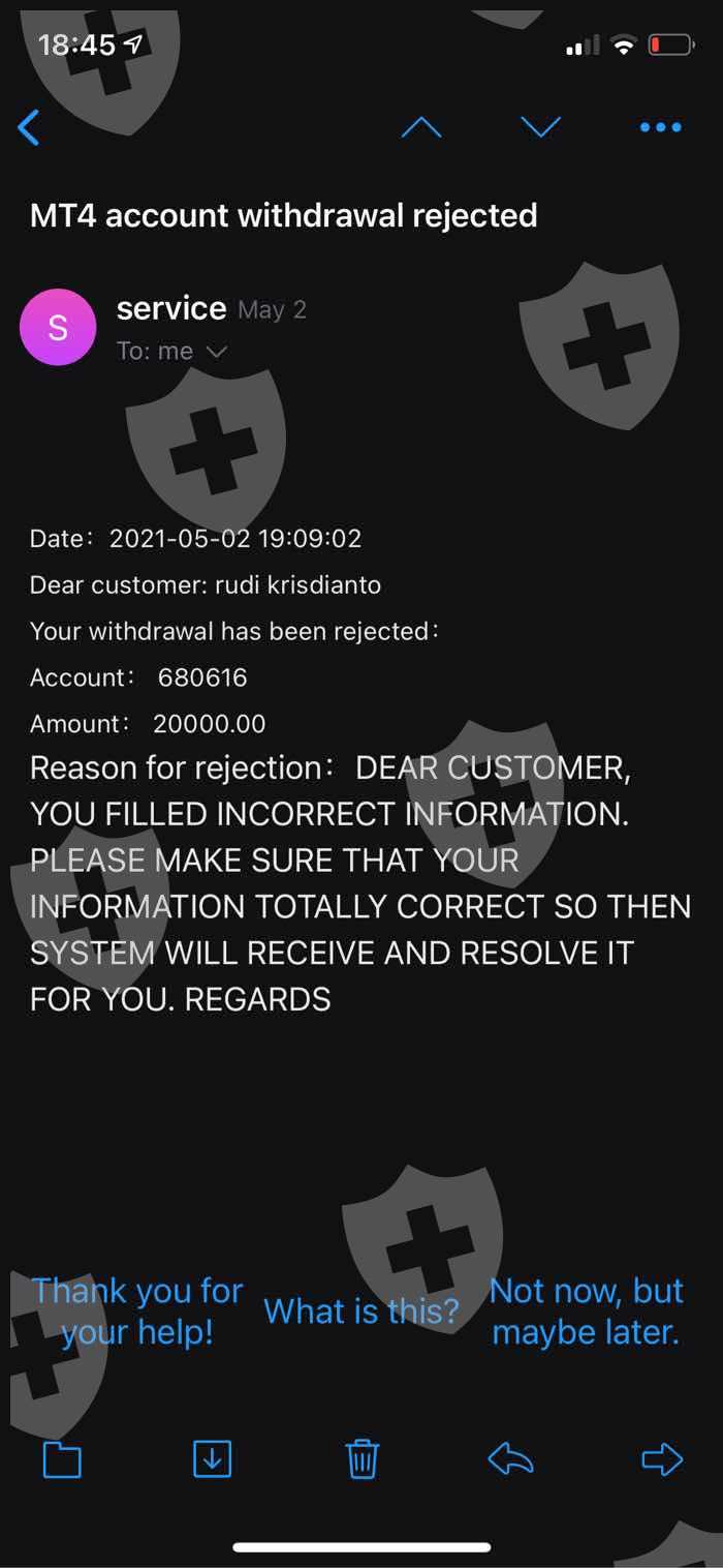 我的出金总是被拒绝..尝试通过Whats App 和电子邮件与他们的客服联系,但没有得到回复,所以我需要帮助