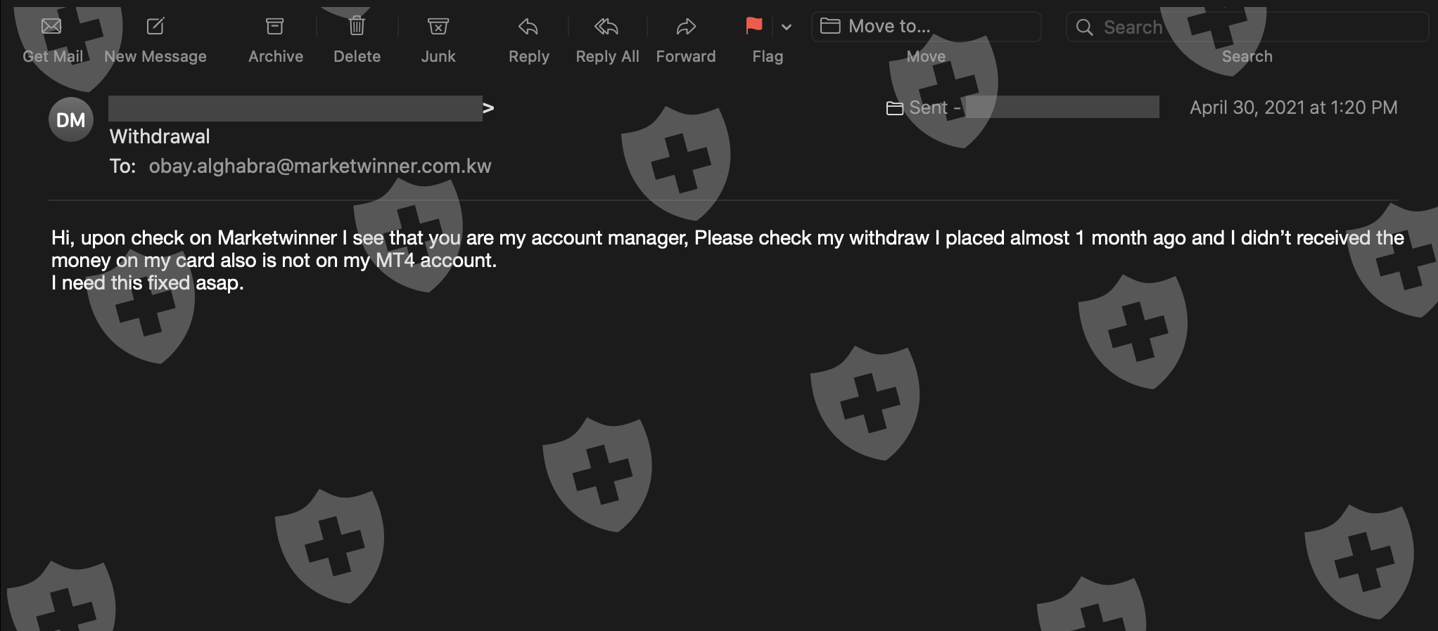 我1个月前就提出了提款申请,他们一直都没有给我打款。 我已发送电子邮件给客服和客户经理,但没有答案!!! 我把这些骗子信息报告给我的银行。
