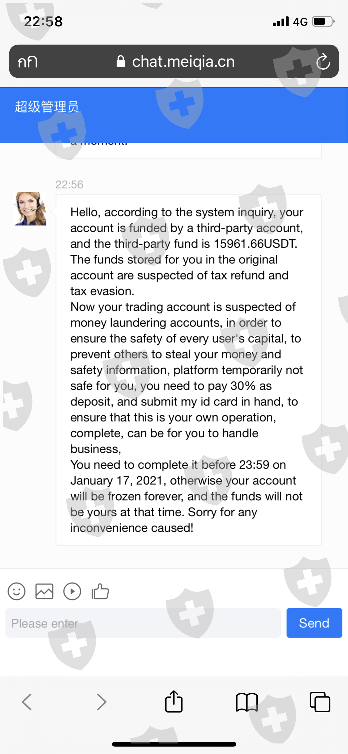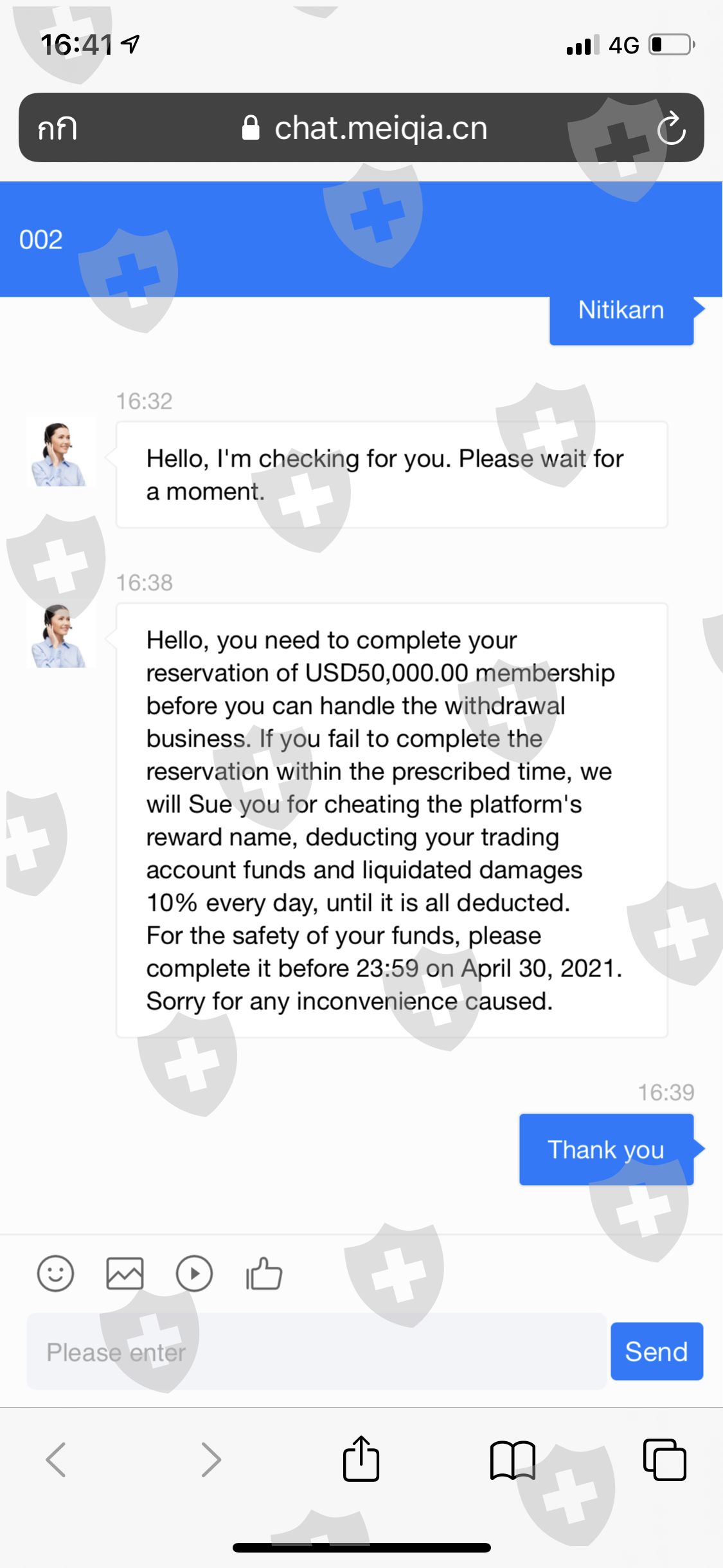 สมัครvip จำนวน $50,000 จ่ายเงินครบแล้วถอนเงินออกไม่ได้ ต้องจ่ายเงินเพิ่มอีก 30%ของเงินในบัญชีทั้งหมด ภายในวันที่ 17 มกราคม 2564 อ้างว่าเพื่อความปลอดภัยของบัญชีคุณ แต่เหตุเกิดขึ้นวันที่ 30 เมษายน 2564 งงมาก ตอนนี้คือทำอะไรไม่ได้เลย