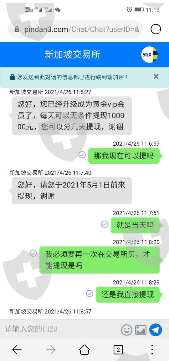 骗子打着交友的旗号,骗我去炒外汇,盈利了无法提现,所谓的客服一会说系统故障,要延迟提现,一会又说升级黄金会员可以马上提现,骗子就劝我去升级,结果充钱升级又以涉嫌内部交易为由,要求缴纳百分之二十的个人所得税,我不想交,骗子又说我们盈利太多了,违法,又让我东拼西凑借来交了。客服答应五月一日后每天可以提现十万,结果还是无法提现。联系客服,客服又以账号异常为由,要求缴纳罚款,我不交,她说冻结资金,线下交由总部处理。然后骗子跟客服同时消失,联系不上了。