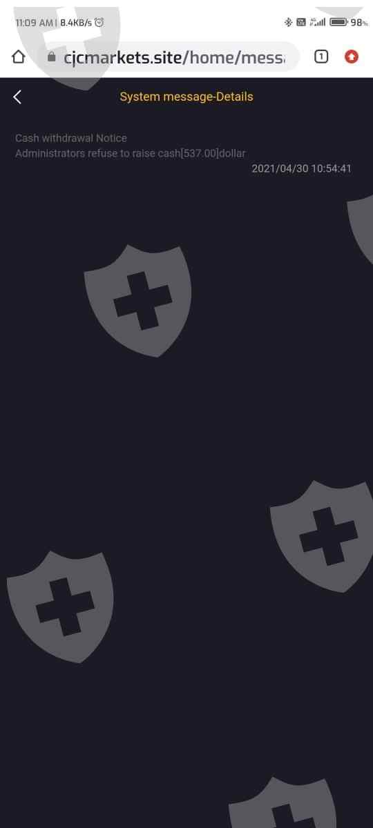 Hello , I want to let you know that I recently opend an account at CJC Markets and I recharged funds too rupees of 40 thousands.unfortunatily india is suffering from covid second danger wave . my family member got affected by corona . So I need to give a good medical treatment and oxygen. for this i need money . I am poor person sir.i am requesting for withdraw my funds since last five days but customer service is not giving permission for withdraw.