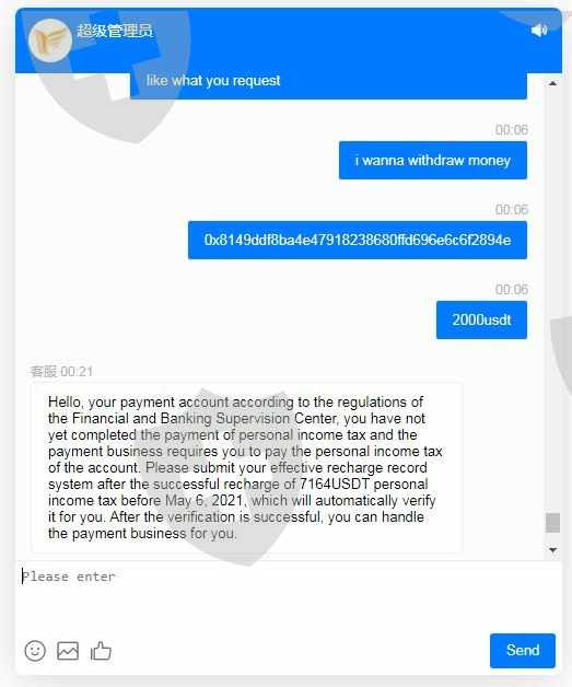 不要相信这种交流,这是100%的骗局。有人会通过Whatapp与您建立良好的关系,教您如何进行交易,然后赚取一些微利,然后就可以轻松提取资金。但是,他们会试图要求您为获得更多利润而付出更多,否则,他们可能会透支,然后扬言要您依法还款。完成透支后,您也无法提取资金,因为必须以总余额的20%来抵扣个人所得税,完成税后,由于金额太大而无法提取资金。如果您想完成洗钱,将被怀疑洗钱,并被迫支付余额的30%...只是一个空洞的承诺。如果您在3-5天之内未及时缴税,则您的帐户将被冻结并丢失全部金额。请注意电话分机号:+825 5393 ....(分机号可能是0502或0704,... )有人告诉我如何取回款项?