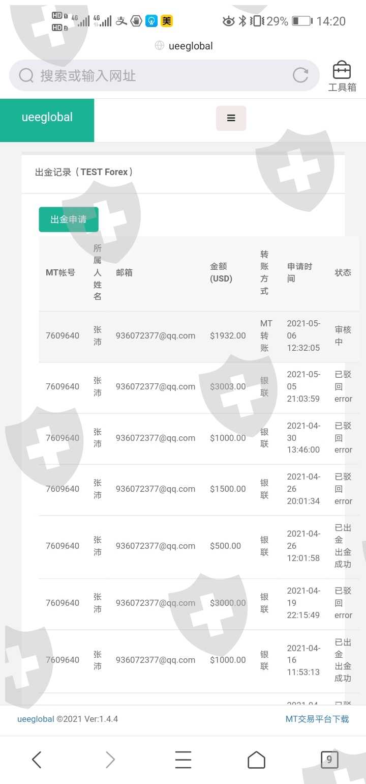 不能出金,总是在审核后驳回,网页沟通,邮箱沟通均没有任何回复,现在邮箱也不存在了,希望能帮助我取回我的资金