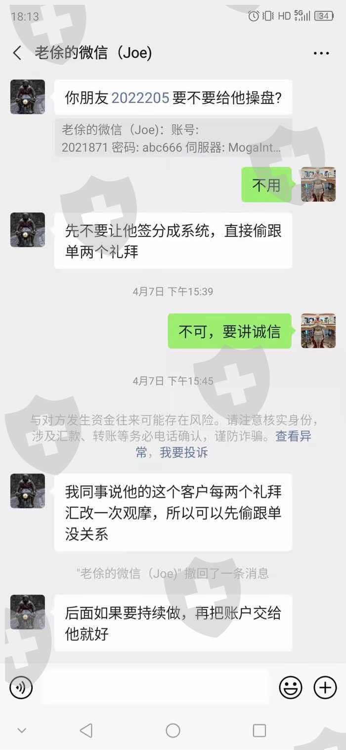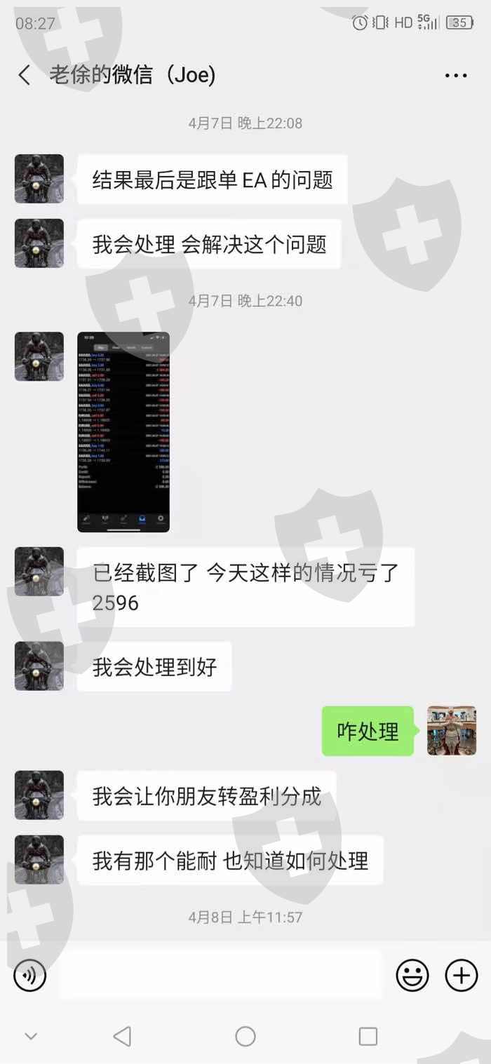 账户资金得不到安全保障,被平台业务私自设置跟单,2021年4月7日再次拒绝其跟单要求,依然强行设置跟单,在当天造成2596美元亏损。当天立即投诉,互相推诿,直到现在也不赔偿损失。特此投诉,要求赔偿损失,开除不称职员工,并道歉。