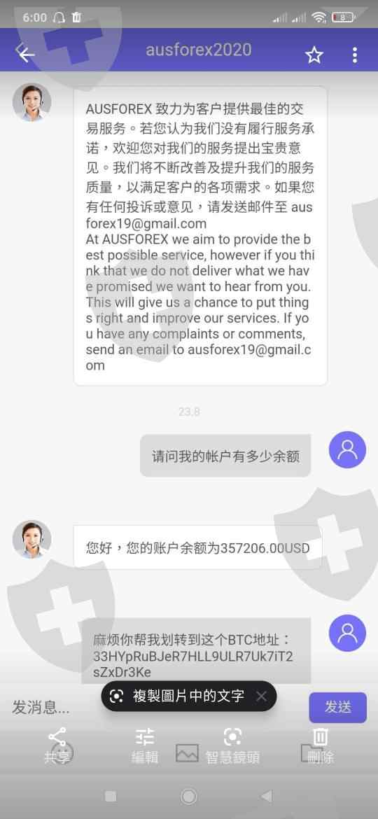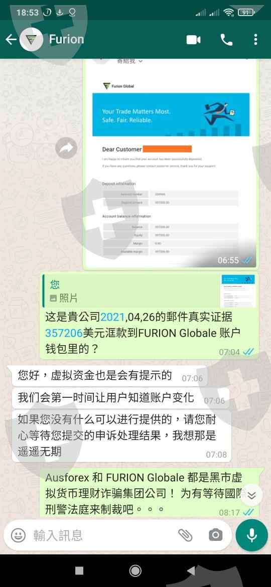 Ausforex 黑交易平台FURION Globale )黑交易平台。两者都是互聯網通道黑色詐騙集團交易平台!一旦投入了資金!假如您要求提現出来!他們會向您先要再付洭款20%的交所得稅金額比率洭款入它的黑色平台管道賬戶內!只有入錢了就不能提現!請各位謹慎小心之。