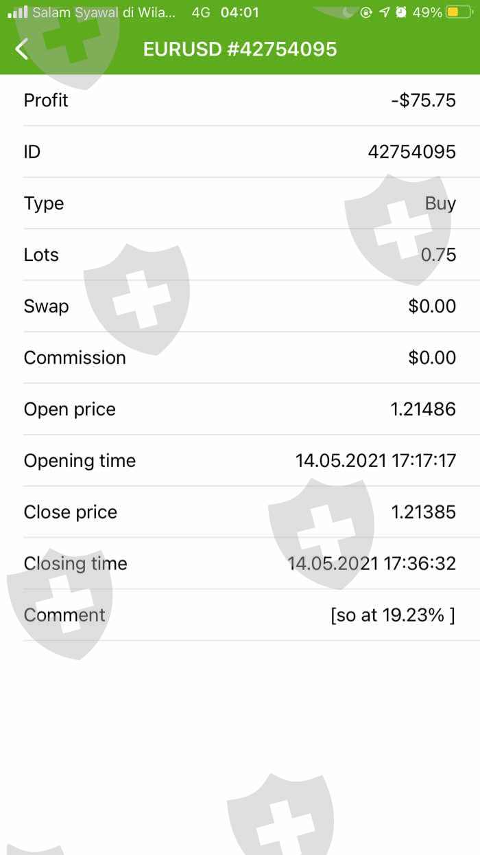 On 14/05 I have order eurusd at price 1.21486 but waiting the price going up suddenly your system has closed at position 1.21385 make me lose -75.75. Kindly please check and investigate why this happened. Thank you