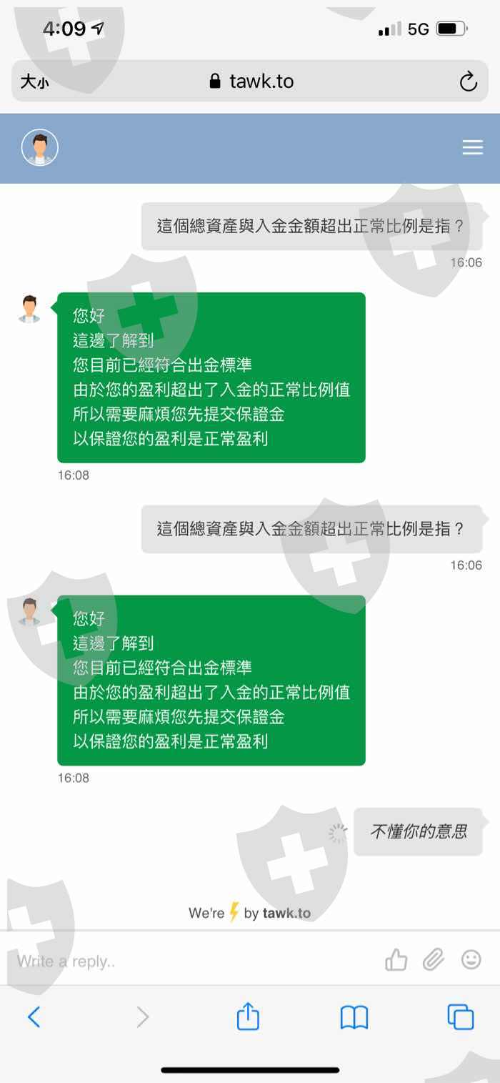 三番兩次要出金時 首次告知因領取贈金導致交易量不足第二次要出金時 以完成交易量 缺被他們說使用不當的程式操作第三次要出金時 說獲利和資本不成比例要繳納保證金