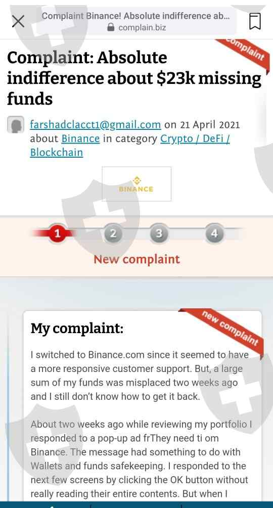 的客户BINANCE JEX他抱怨说,他通过单击www.binance.com网页上的一个弹出广告从帐户中损失了23000美元,当他向Binance的客户服务部门投诉时,他们完全无视此事。