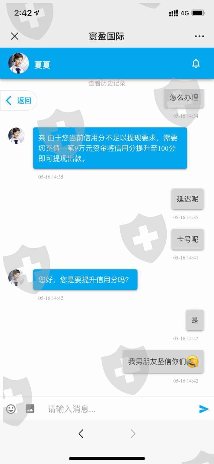 第一次出金借口银行信息错误,要求50%认证金,否则账户予以冻结转了认证金以后,要求转9万信用提升分,各种理由不给出金,已经报警,此为诈骗平台
