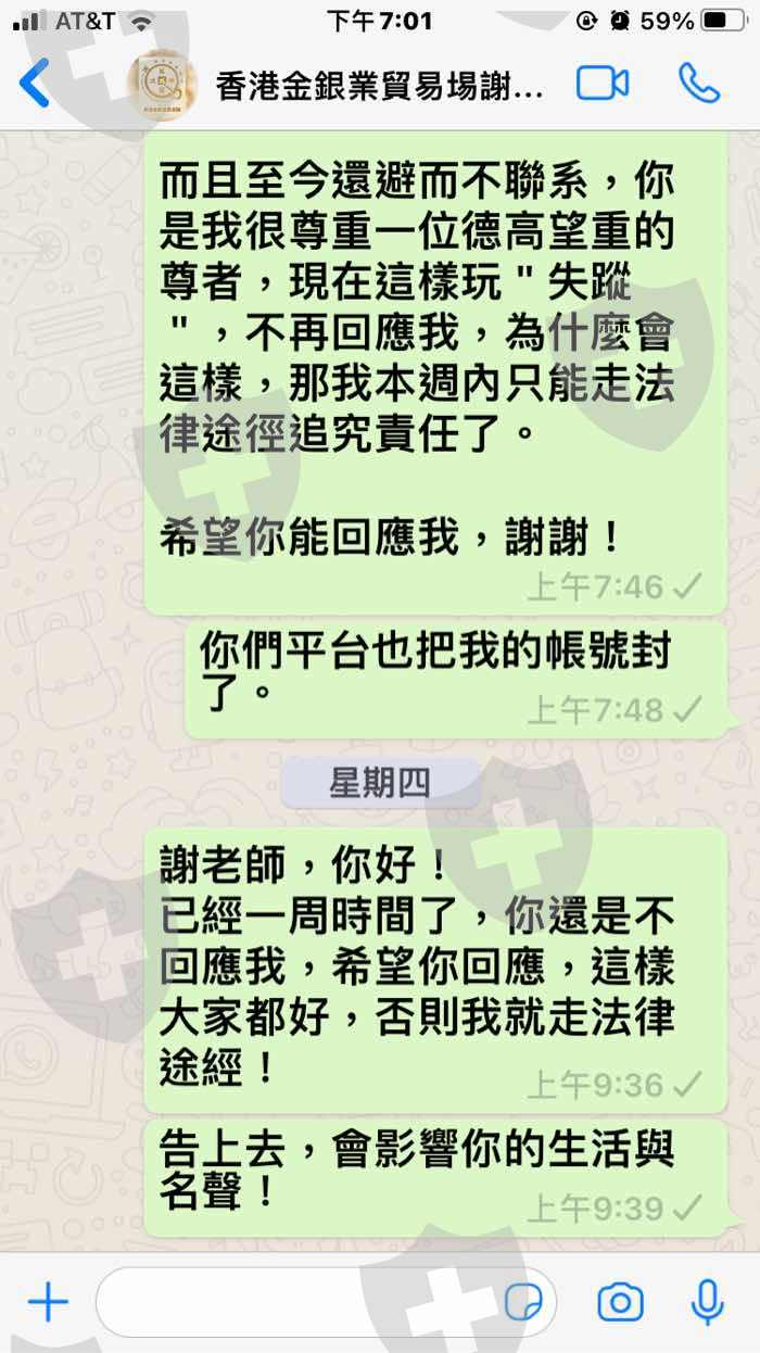 當我早上醒來看到帳號爆倉。即與他們交涉,後答應先退還我50%保證金的錢$21600美元,說好一周內到帳,怎知一直沒有收到錢,再與他們聯繫,不回應、不答復、不理睬!以下載圖闡明。