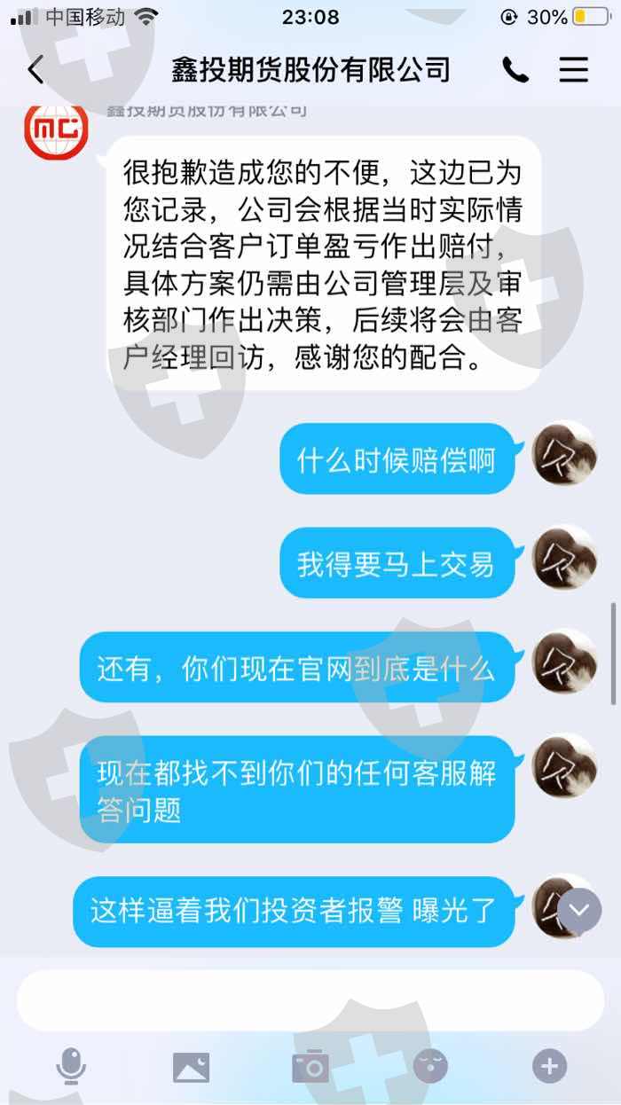 鑫圣投资欺骗投资者!5月18日晚间服务器连接不上,给我造成巨大损失!