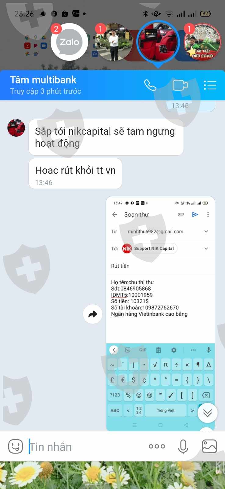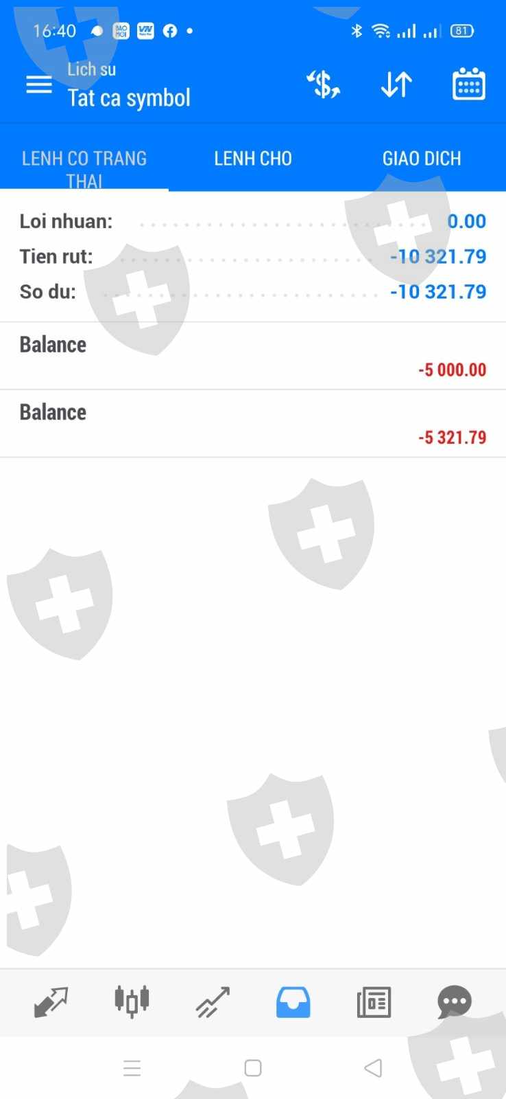 Tk Mt5 1001959 họ tên chu thị thư của tôi còn lại 10321$ sau khi được nhân viên hỗ trợ rút thì sàn đã cho rút 5000$ mà lại trừ hết 10321$ trong tk của tôi, nếu không thanh toán đủ cho tôi thì tại sao lại trừ hết số tiền trong tài khoản của tôi làm gì thực sự tôi không phục nhưng dù sao cũng cám ơn bạn nhân viên đã hỗ trợ