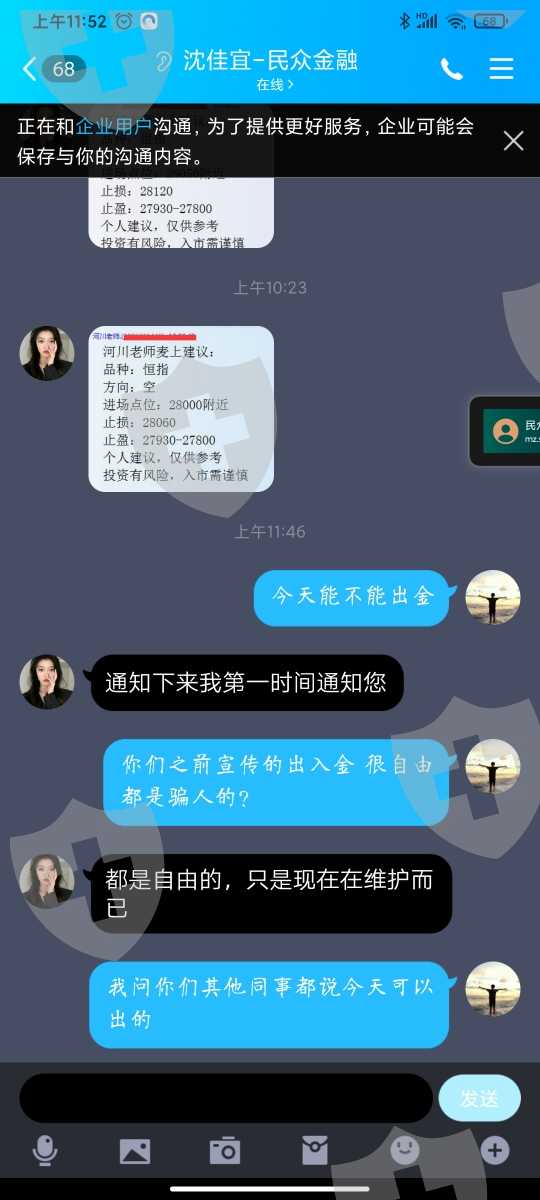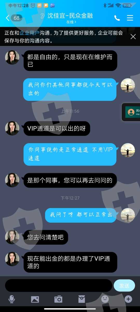 上海 鑫财中投资管理有限公司 由民众金融期货授权 无法出金,升级会员才能出金,明显又想套钱进去。