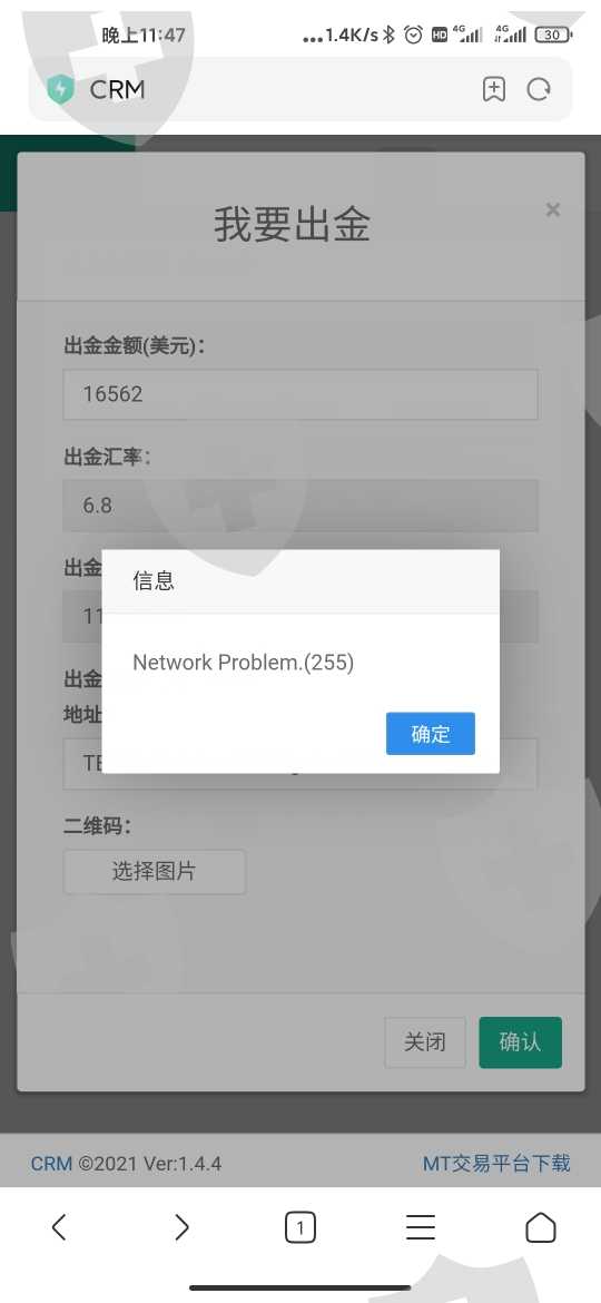 无法出金,显示网络错误,入金正常!没有客服介入!官方邮件也没有回复