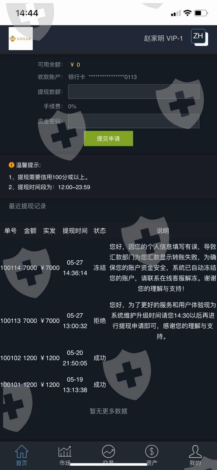 金道贵金属不给提现