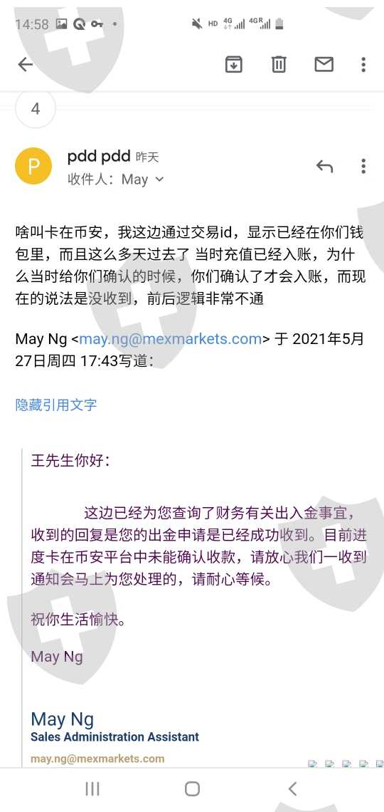 另外如果是真的我的资金还在途中没到他们钱包,一个大交易商会给我我入账?会让我交易吗?mbg会在没有确认收到USDT之前就给你钱让你交易?这不可能是一个专业交易商做的事,为什么等我出金才告诉我没到账