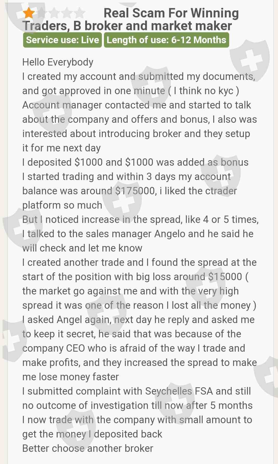 一个客户FONDEX已投诉他因投资于该经纪商而蒙受巨额亏损,而该经纪商无法提供该损失的正当理由。客户建议不要投资该经纪商。