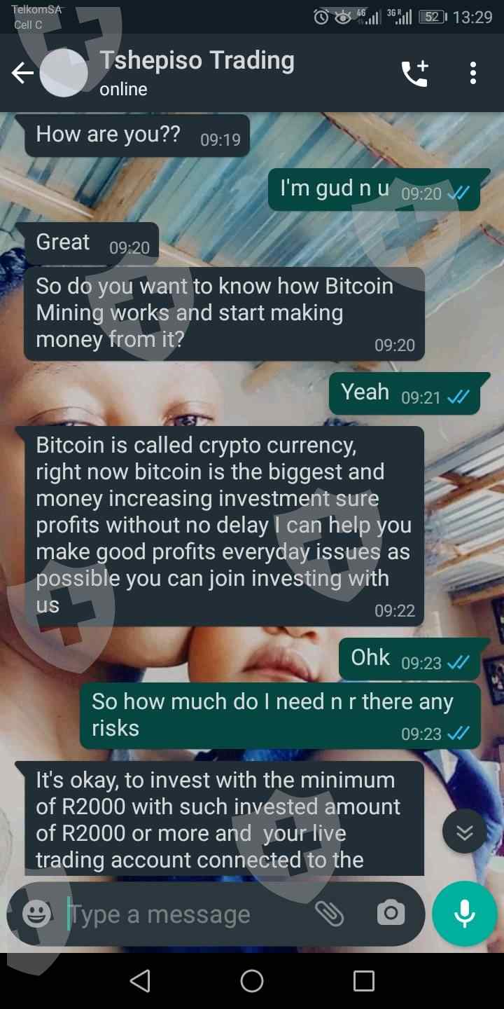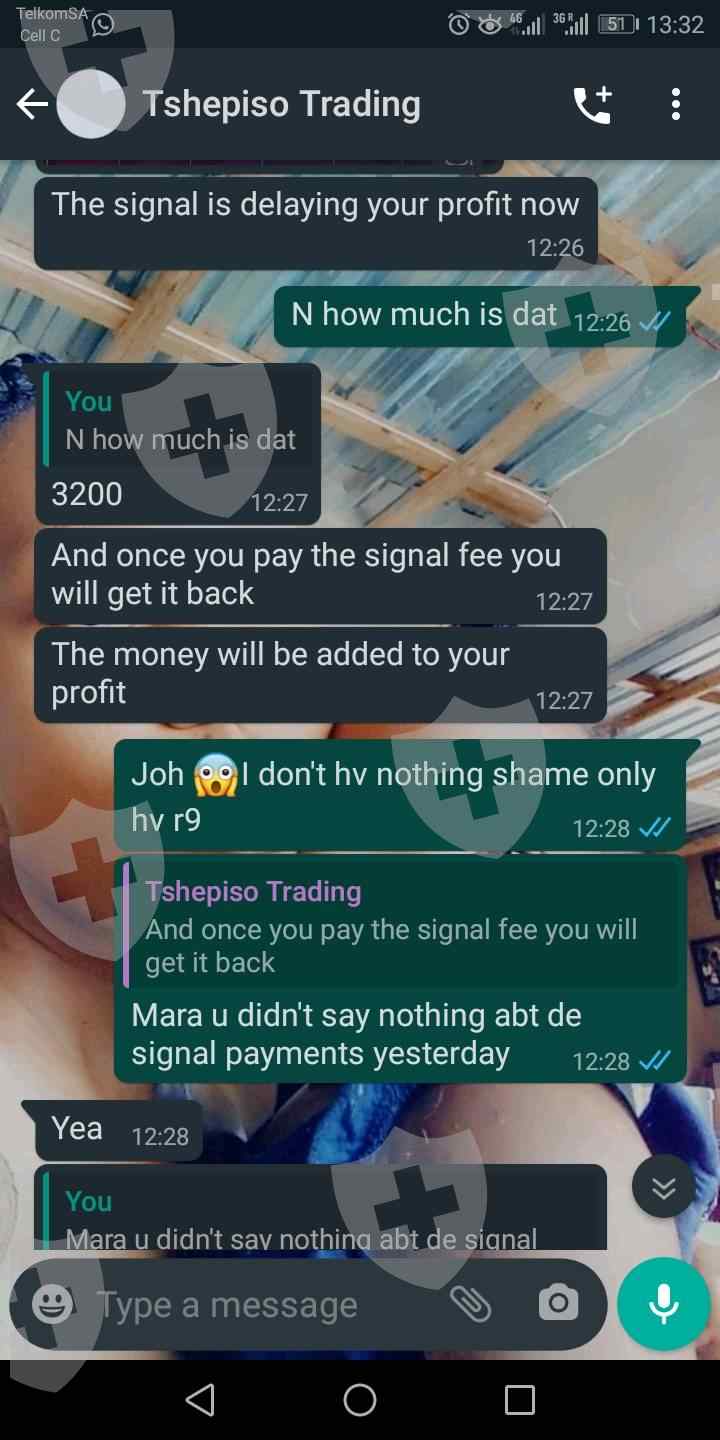 他们告诉我投资,但每次我想拿钱时都没有拿回我的钱,他们告诉我要支付dis费用,这永远不会结束。我从r1000开始,他们说我必须支付r2700 4信号费,然后r1500 4提款利润然后提款费n另外1200 dis永无止境