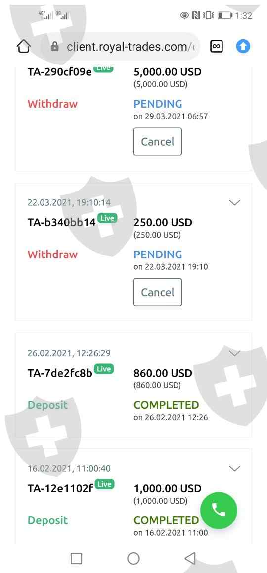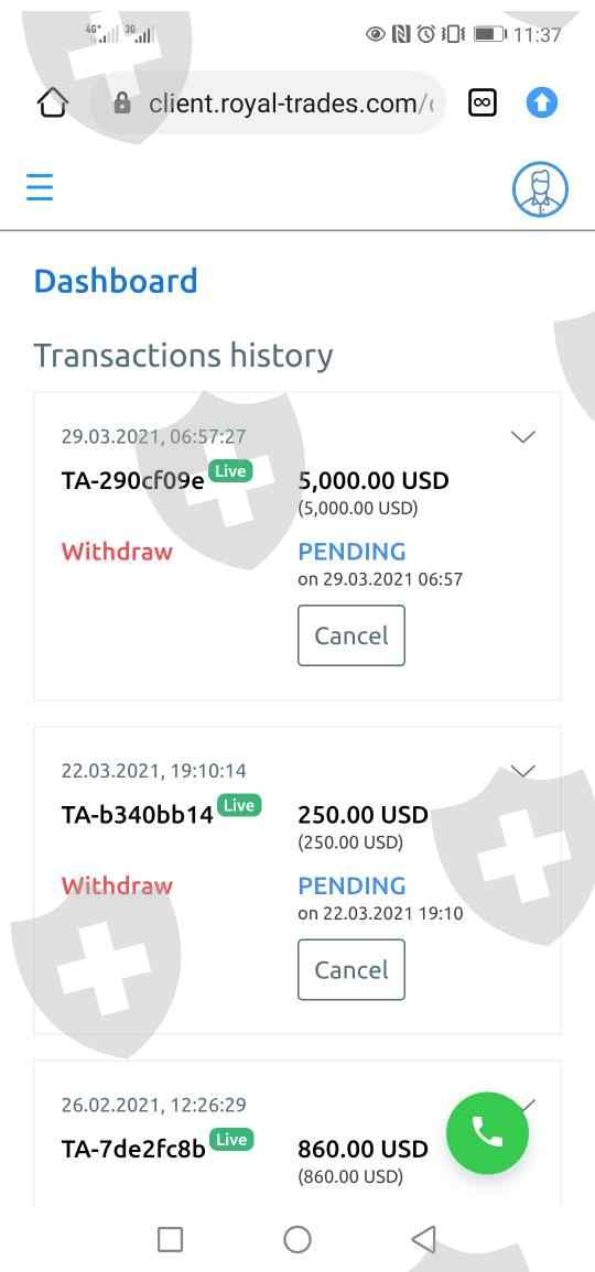 I invested on royal traders when I want to withdraw they told me to deposit more money to be able to withdraw till now It on pending