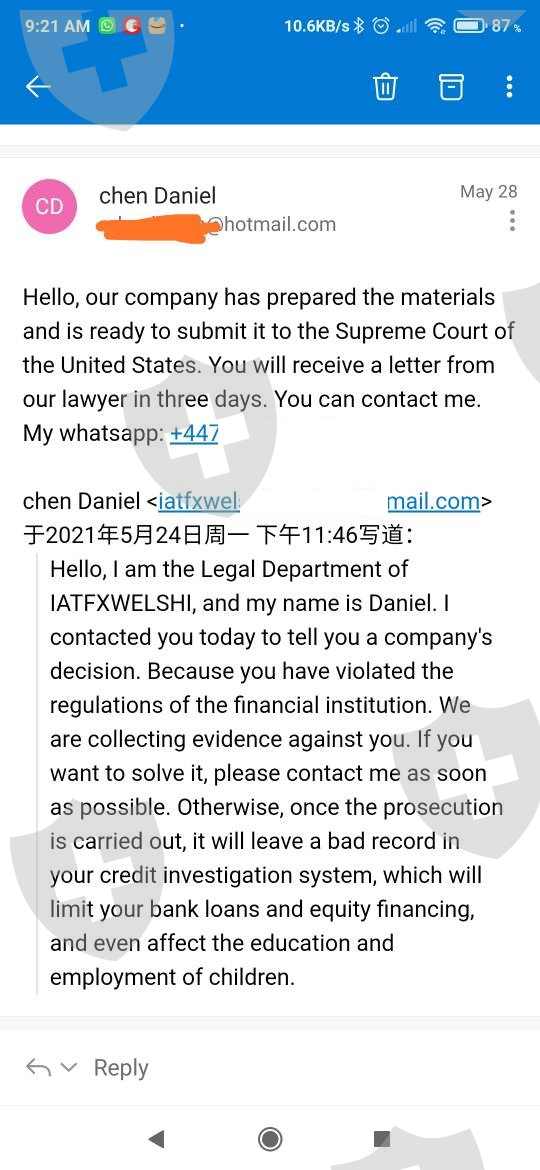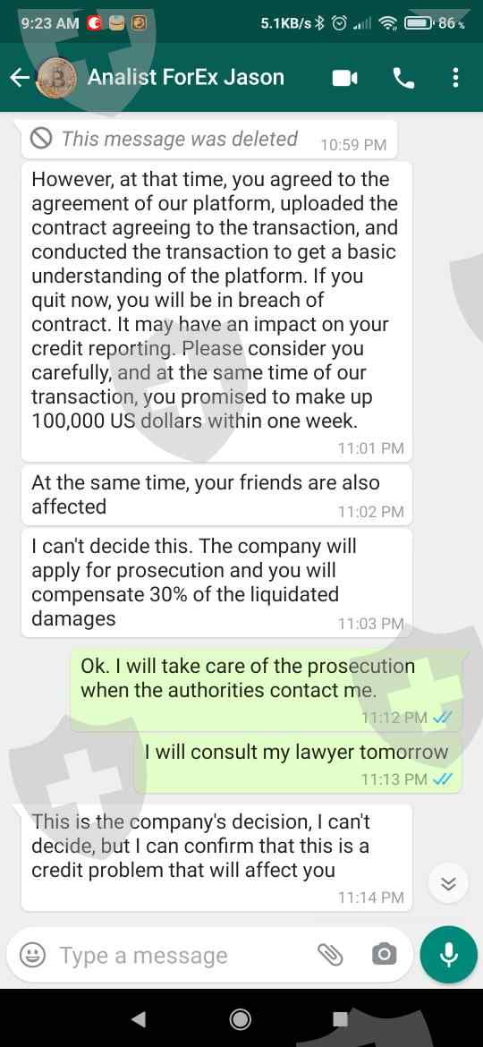 不能从账户中提取资金。他们要求他们的“财务部门”处理请求,然后通过币安和 USDT Thether 加密货币发送资金。当决定不再增加资金以达到 10 万美元的要求时,受到电子邮件和 WhatsApp 的威胁。他们使用“成功的”女企业家来说服您投资,向您展示她在 MT4 中的 70 万美元交易余额