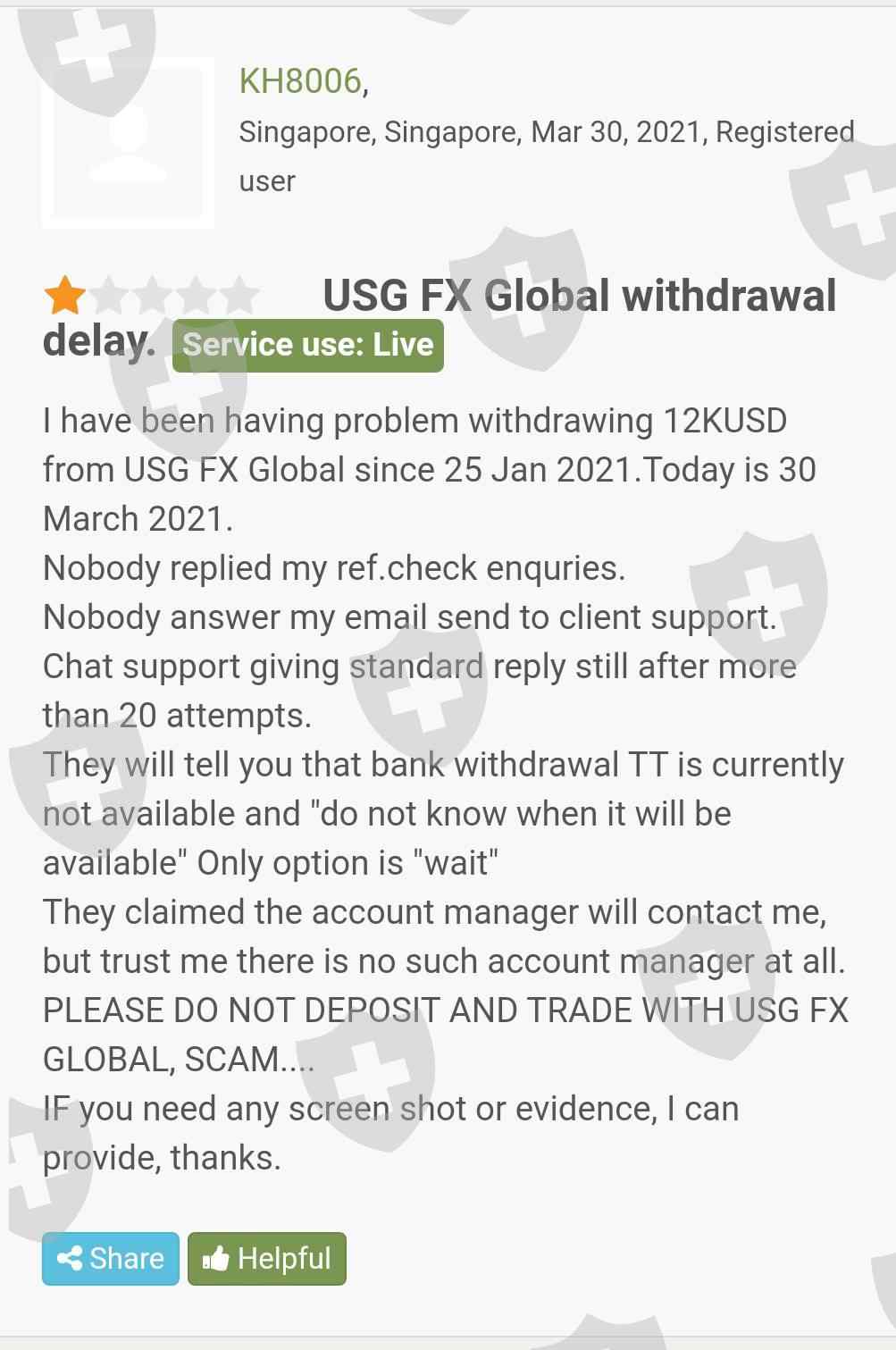 Many people cannot withdraw their deposits from USGFX and when they are contacting the officials, they are giving various fake reasons for failure of withdrawal. Please stay away from this scam company.