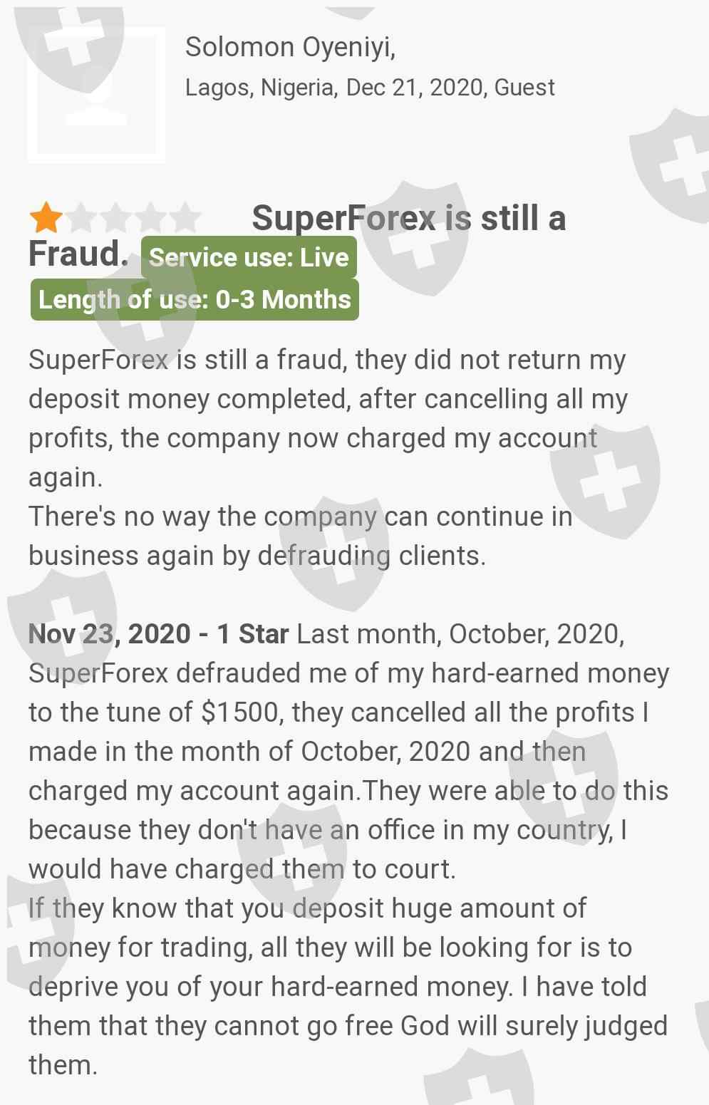 有客户投诉Super Forex他们取消了他赚取的所有利润,也没有退还他的存款。远离这个骗局。
